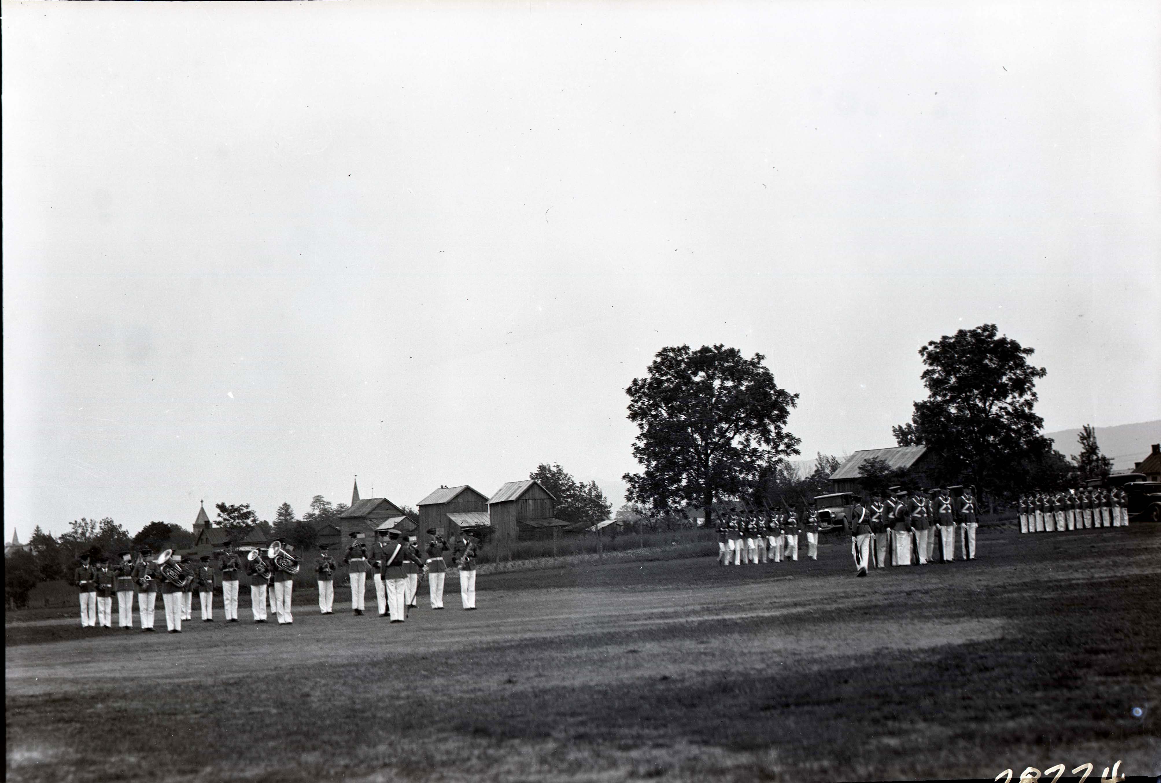 Unidentified cadets from Massanutten Military Academy (MMA) are on parade on Seibert Field at the back of the campus.