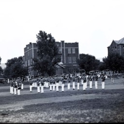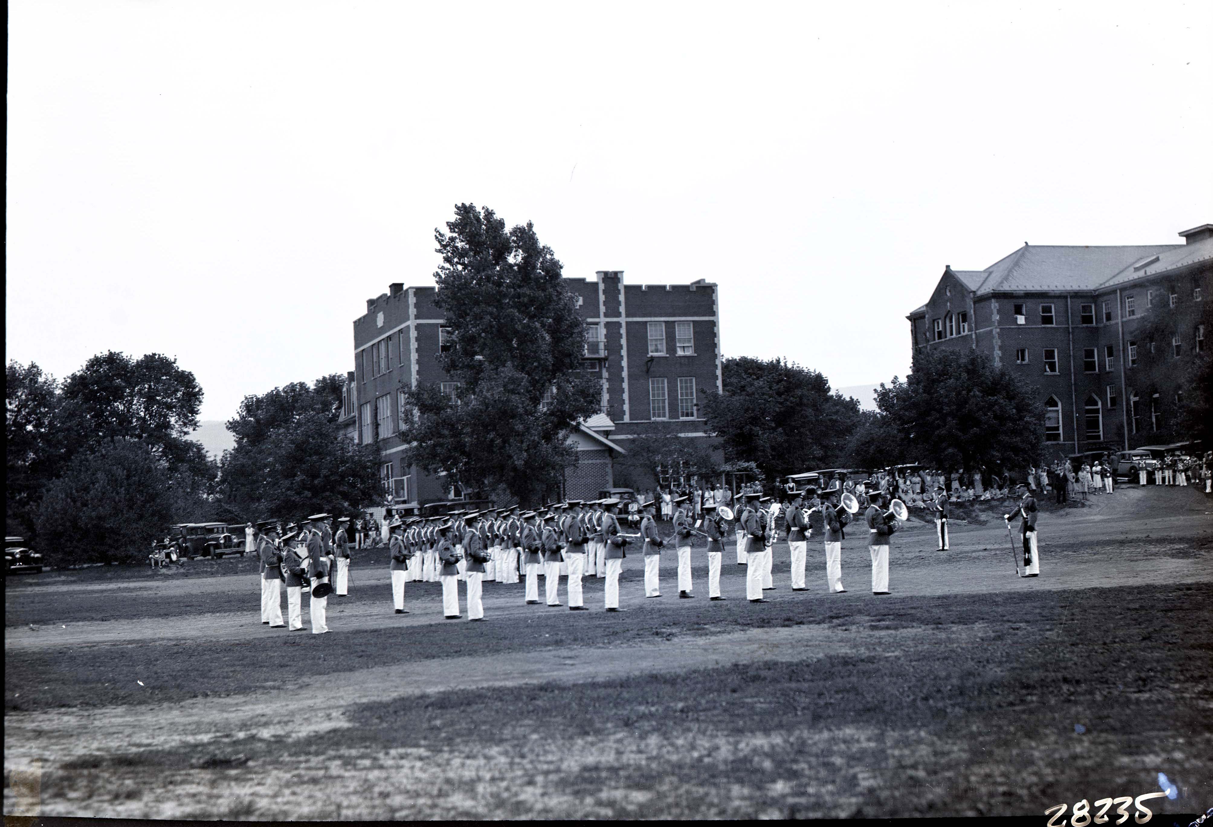 Unidentified cadets from Massanutten Military Academy (MMA) are on parade as members of the school's band.