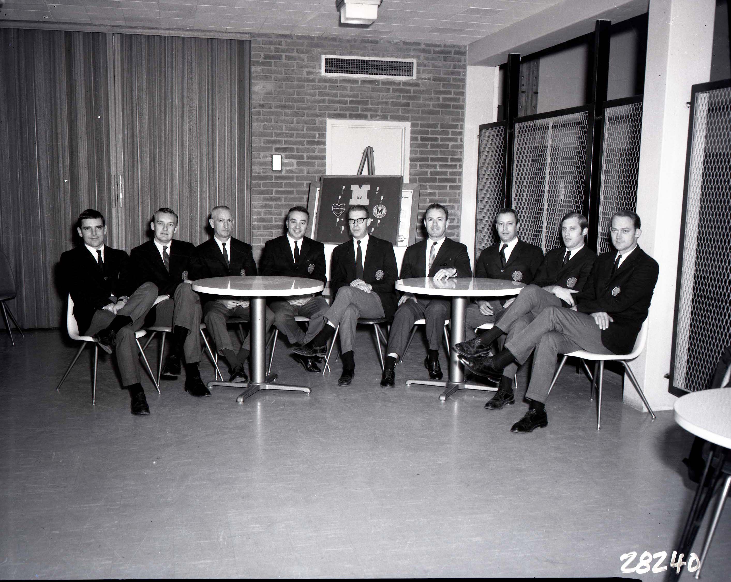 Group of nine unidentified alumni of Massanutten Military Academy (MMA).