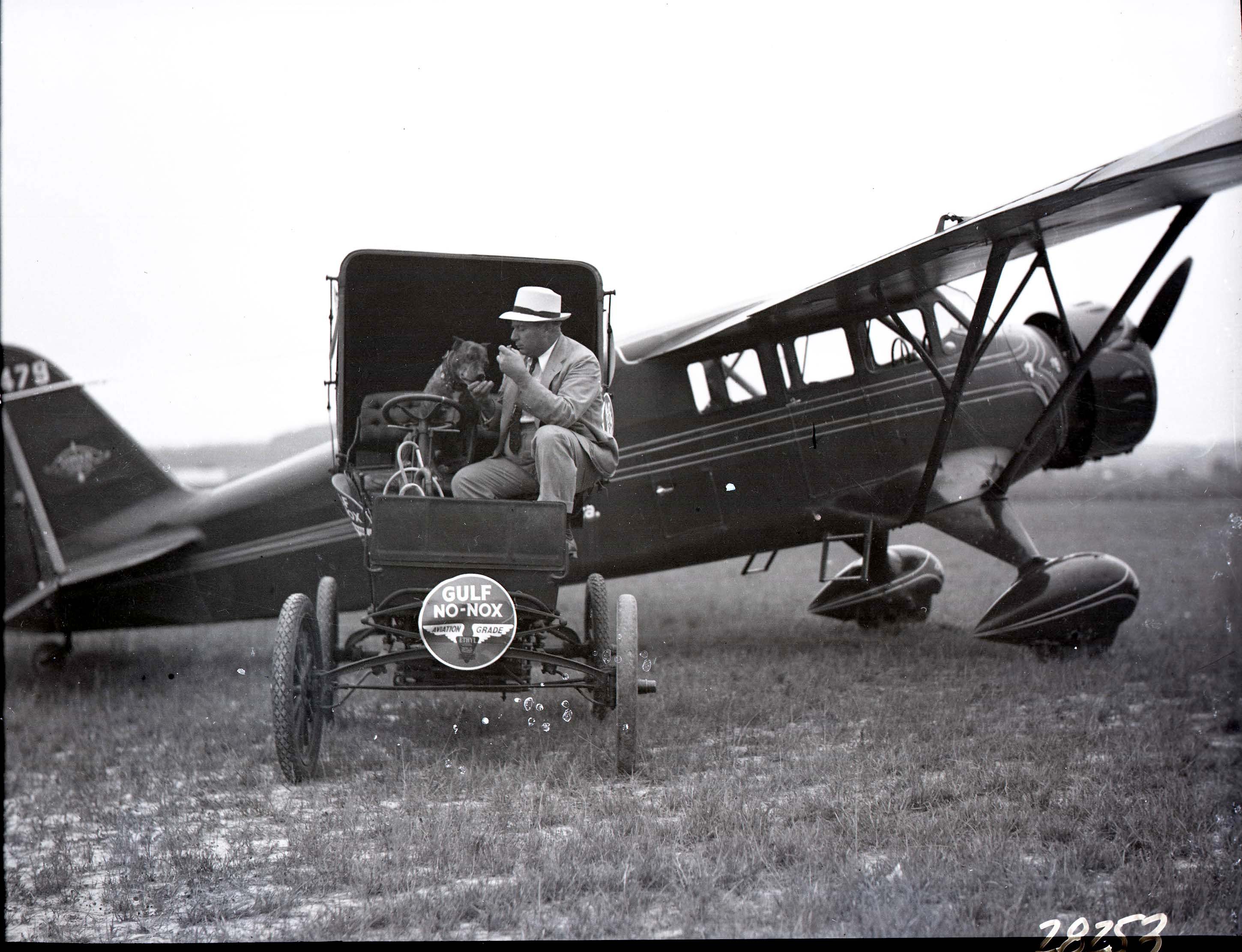 This photograph was taken during “Gulf Aviation Day” held in Mount Jackson Virginia on August 4, 1935. The event featured “Reynolds and Mason Flying Circus” and was an advertising event sponsored by Burgess Nelson, a Gulf Refining Products distributor. Local newspapers noted the event featured music, comedy, and “thrills.”