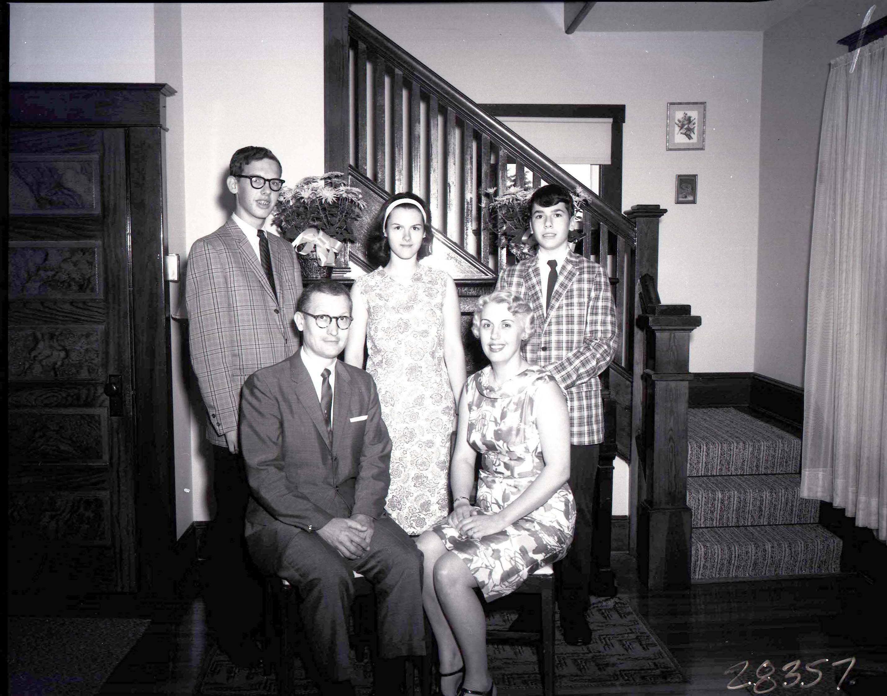 Unidentified man and woman are seated with three teen-aged children standing behind them.