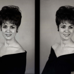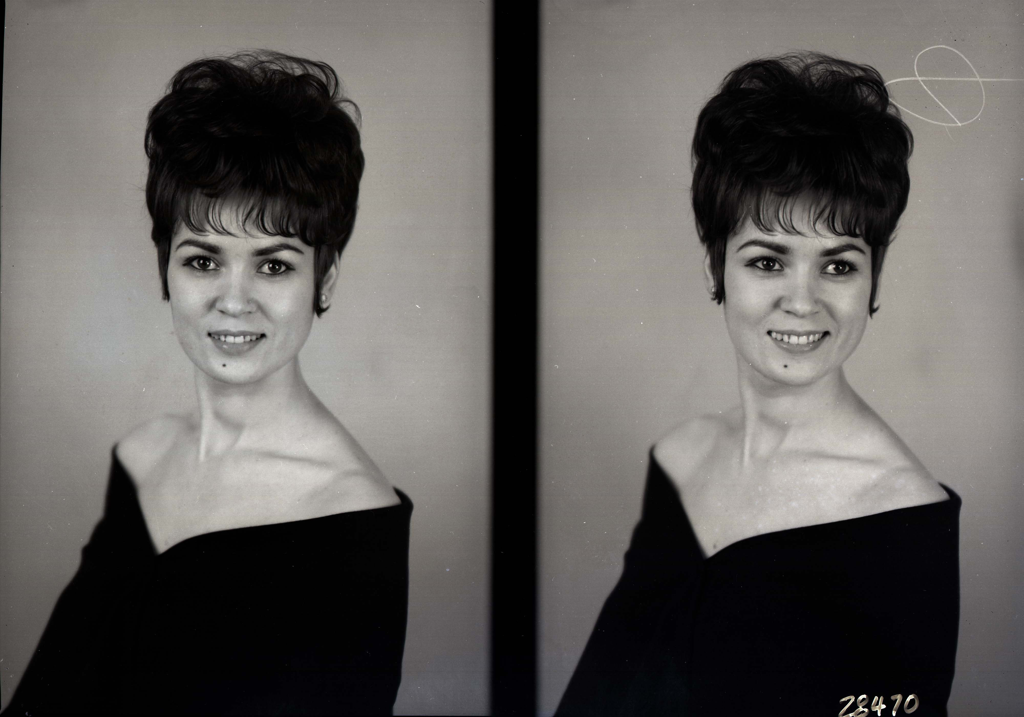 Photo of two separate portrait photographs of the same unidentified young woman with her hair styled up.