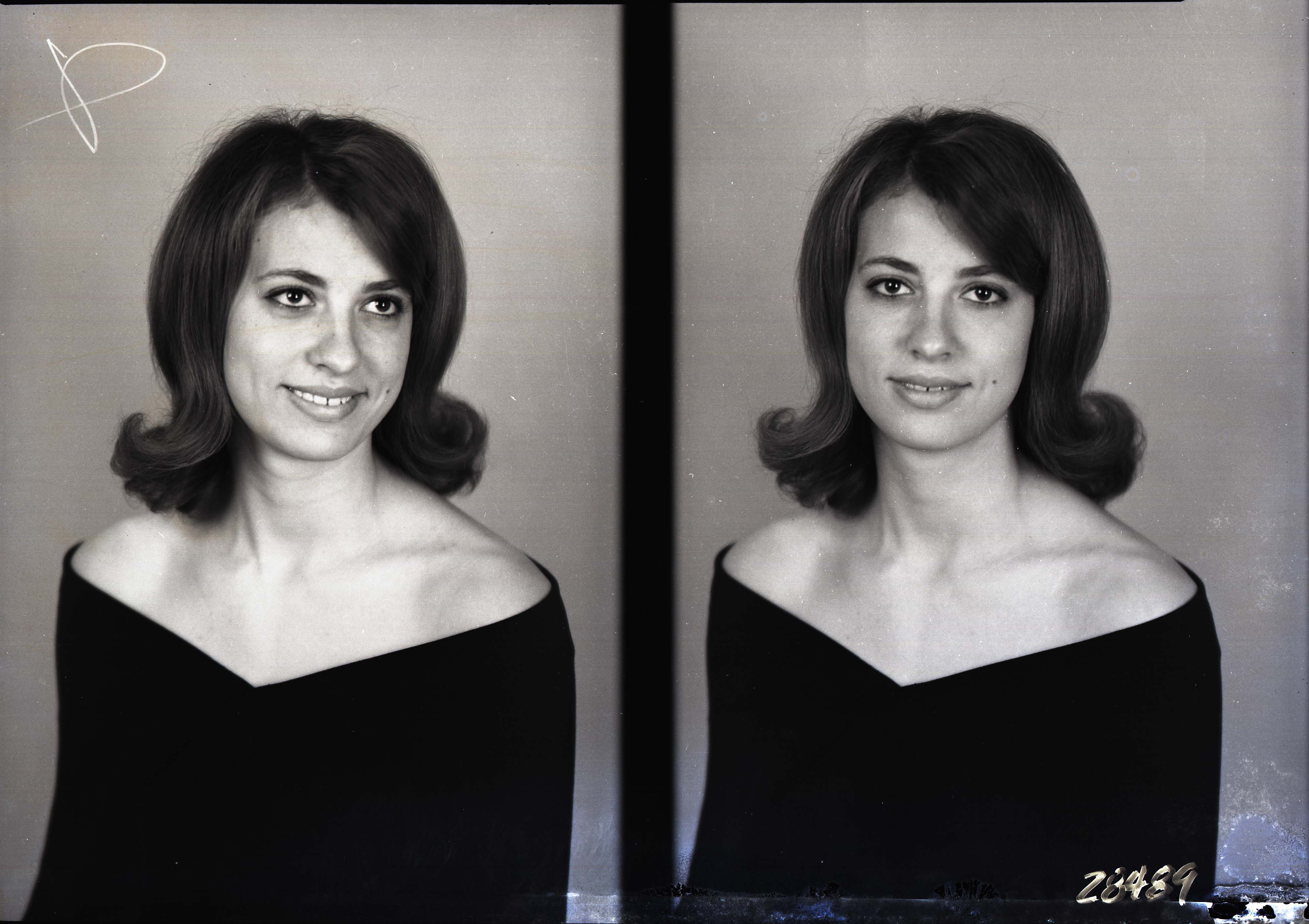 Photo of two separate portrait photographs of Sylvia Lee (Shoemaker) Scott as a young woman.