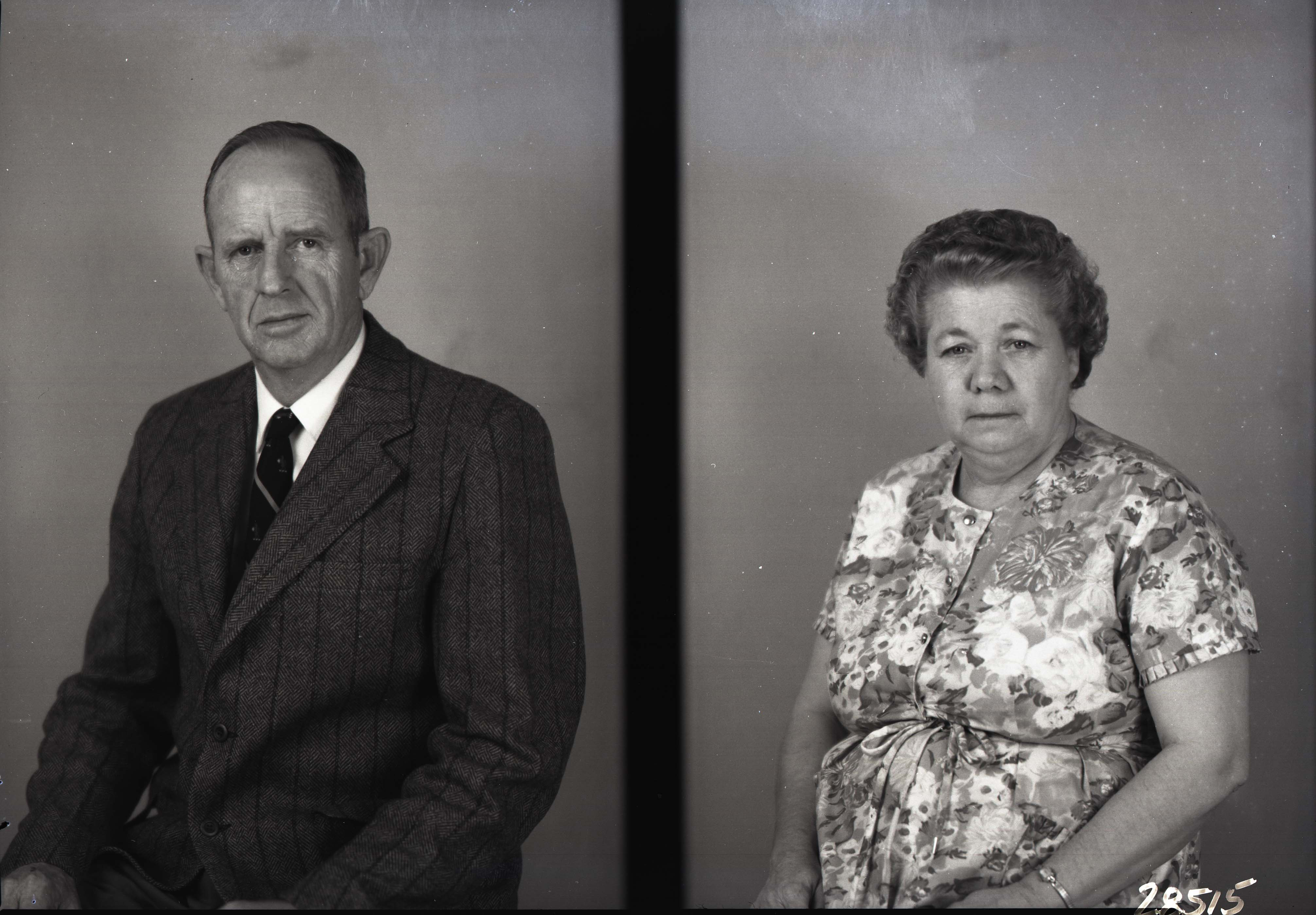 Photo of two separate individual portrait photographs of Clarence and Virginia Lutz.