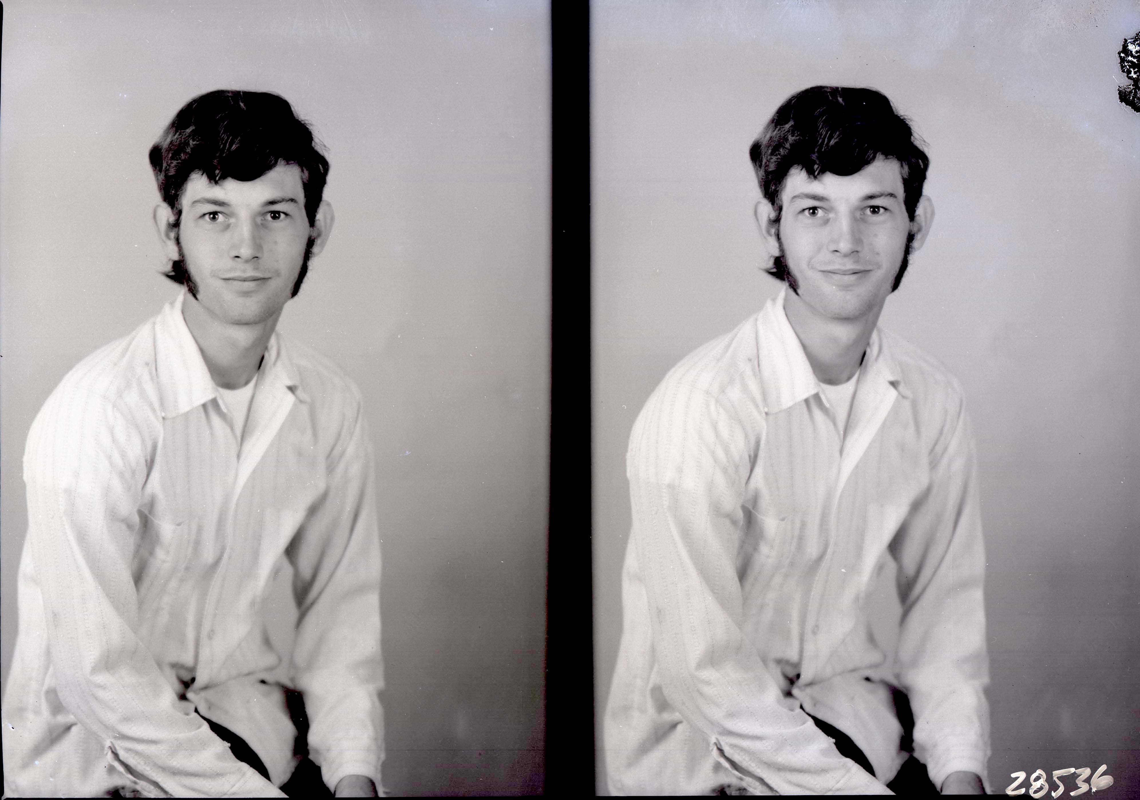 Photo of two separate portrait photographs of the same unidentified young man.