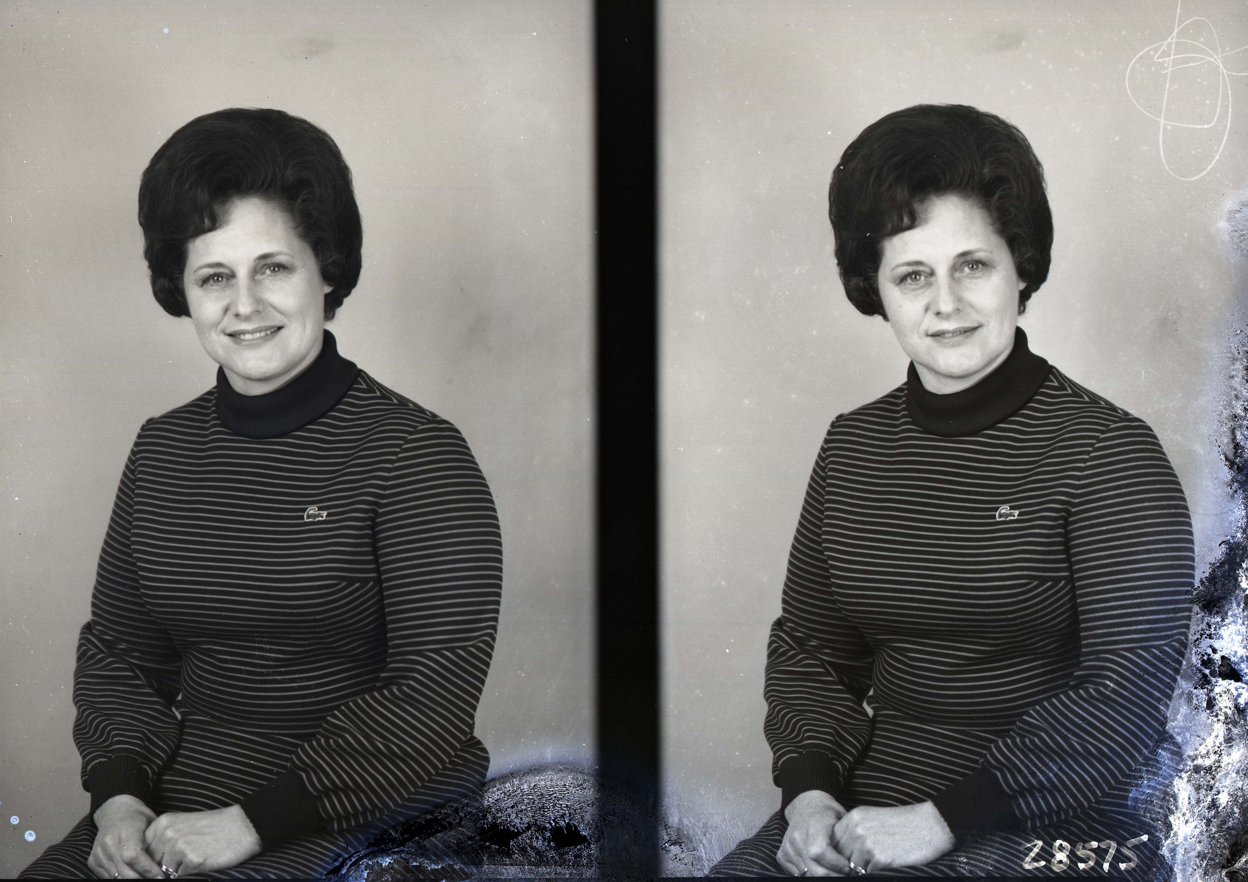 Photo of two separate portrait photographs of Nellie (Lantz) Long.