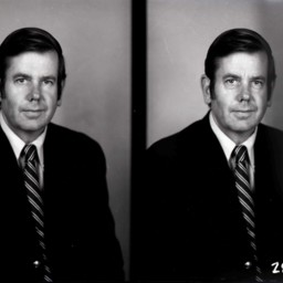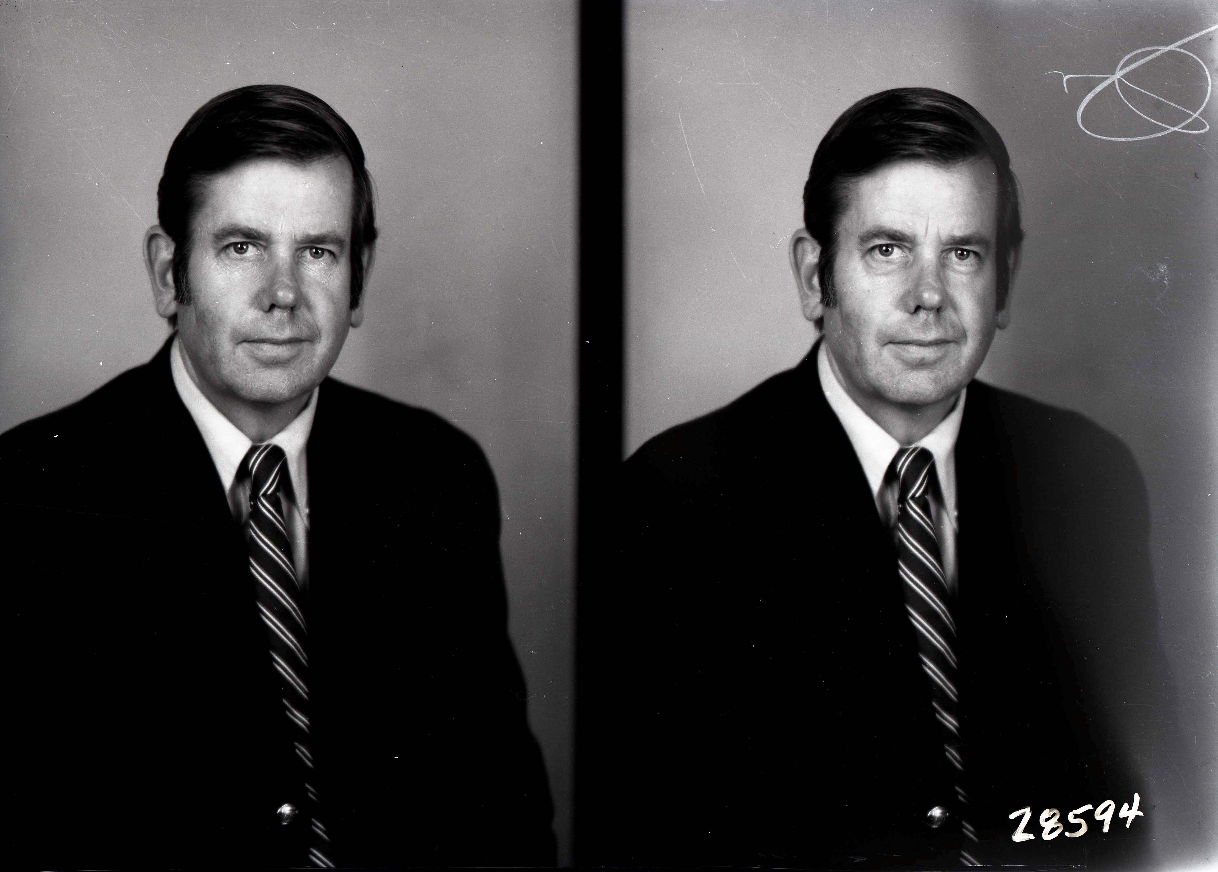 Photo of two photographs of the same unidentified man with sideburns and wearing a striped tie.