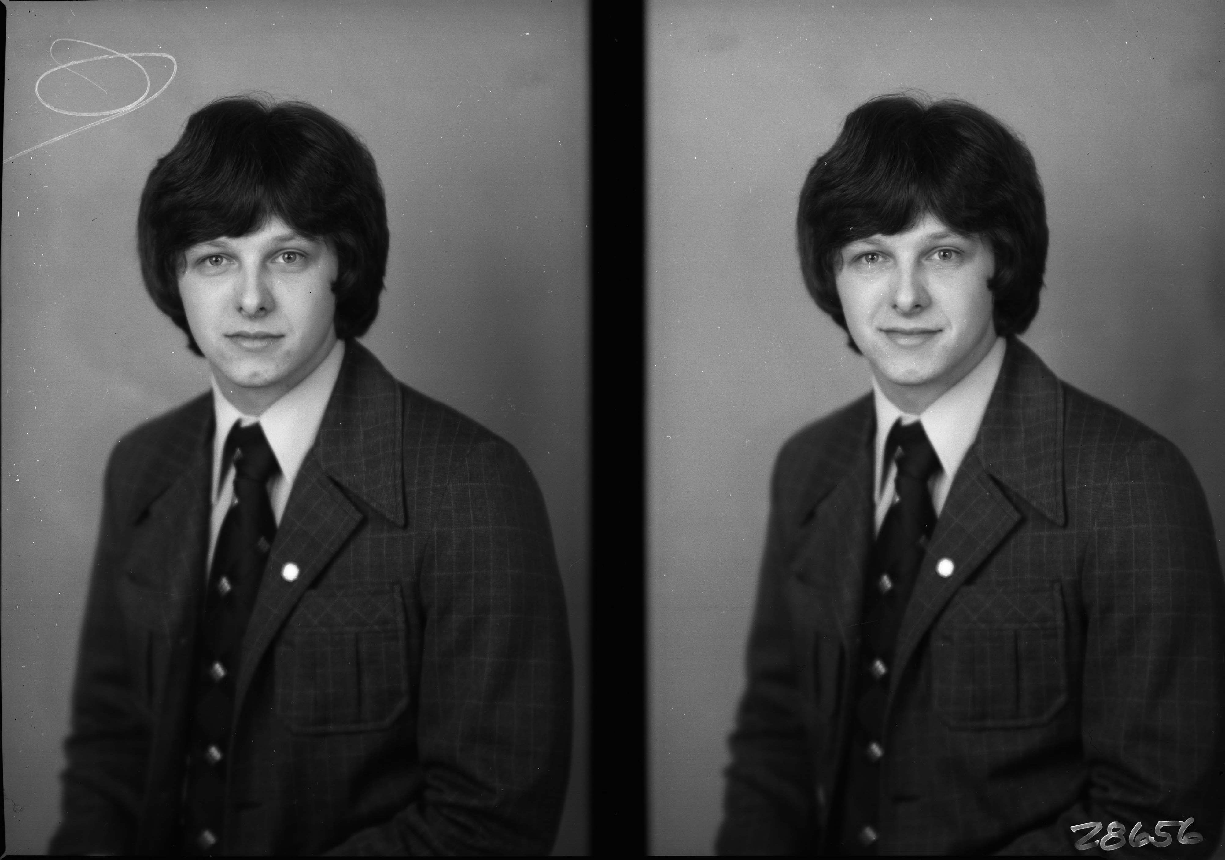 Photo of two separate portrait photographs of George Walker as a young man in a suit and tie.