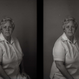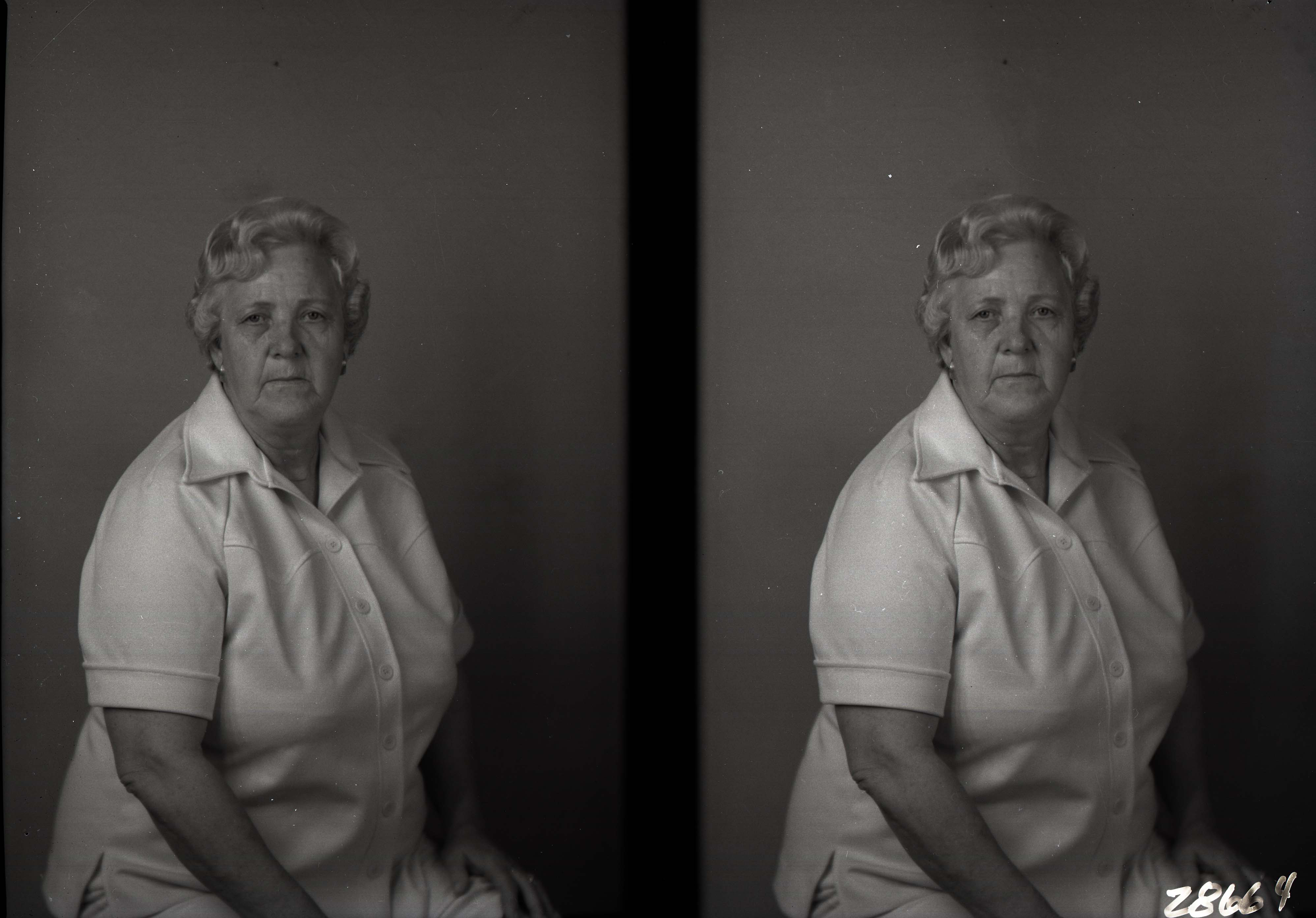 Photo of two separate photographs of the same unidentified older woman with short, styled hair.