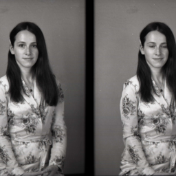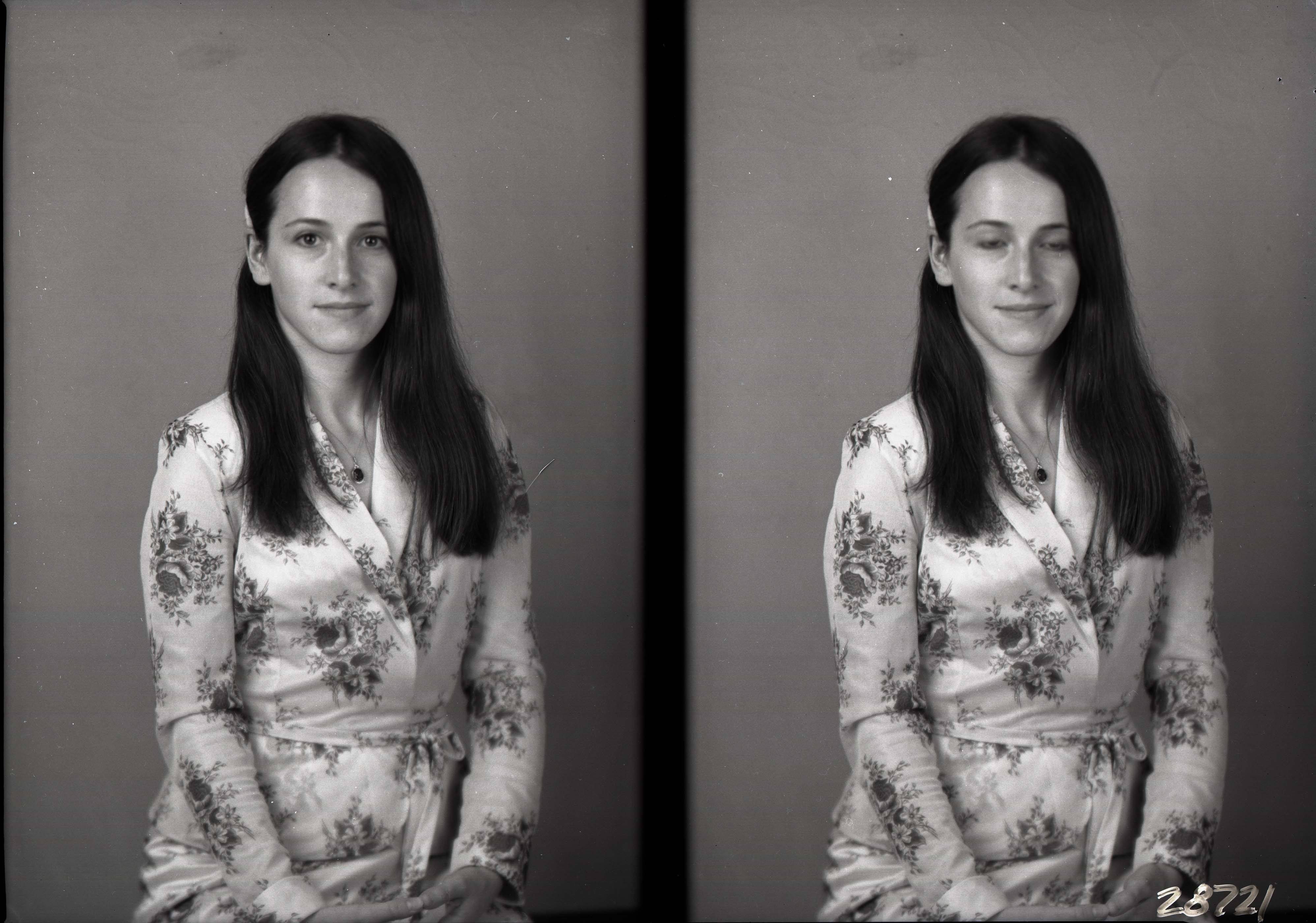 Photo of two separate portrait photographs of the same unidentified young woman with long hair.