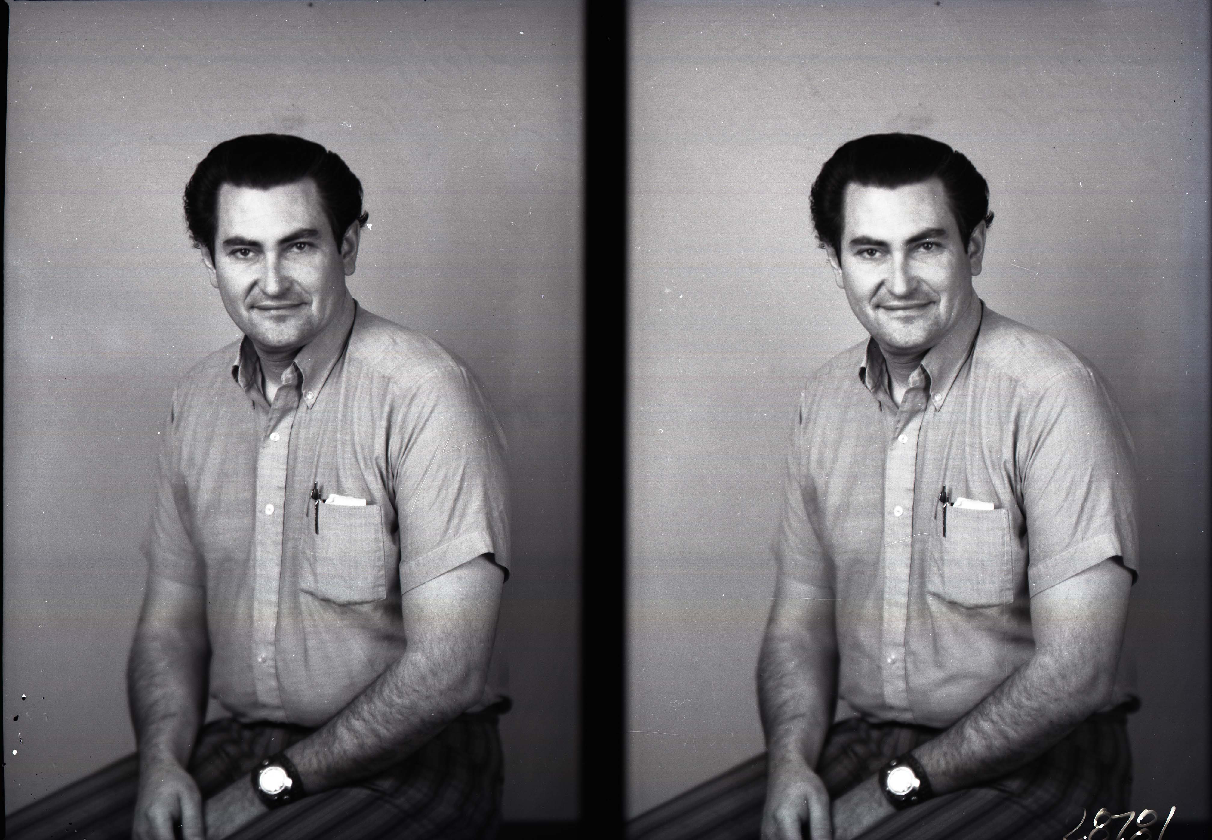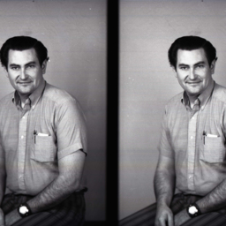 Photo of two separate photographs of the same unidentified man wearing a short-sleeved shirt and striped pants.