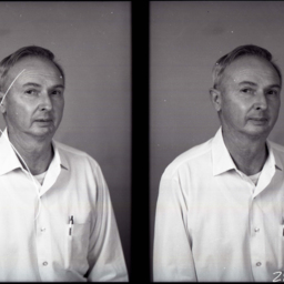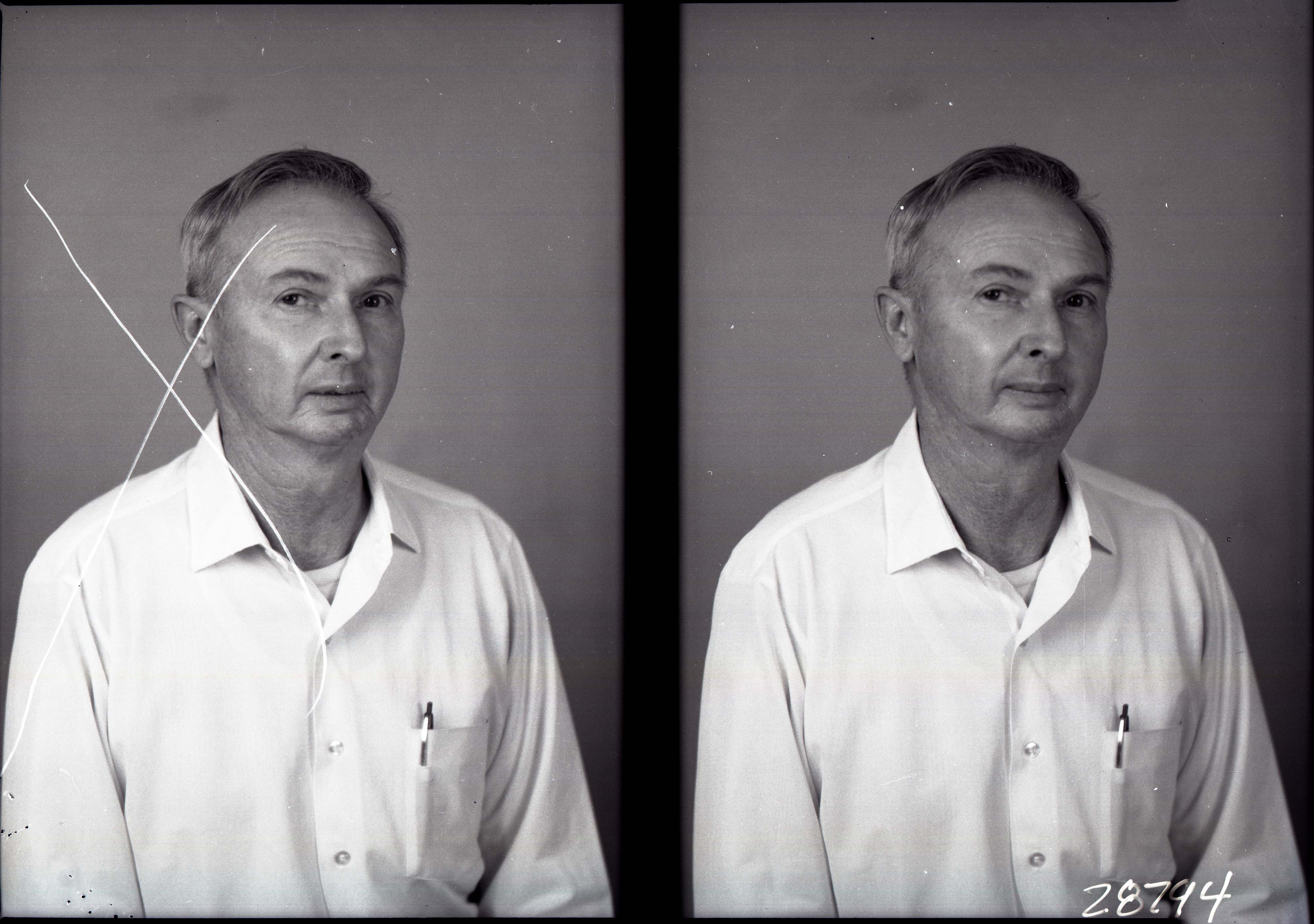 Photo of two separate portrait photographs of the same unidentified man wearing a collared shirt with a pen in the breast pocket.