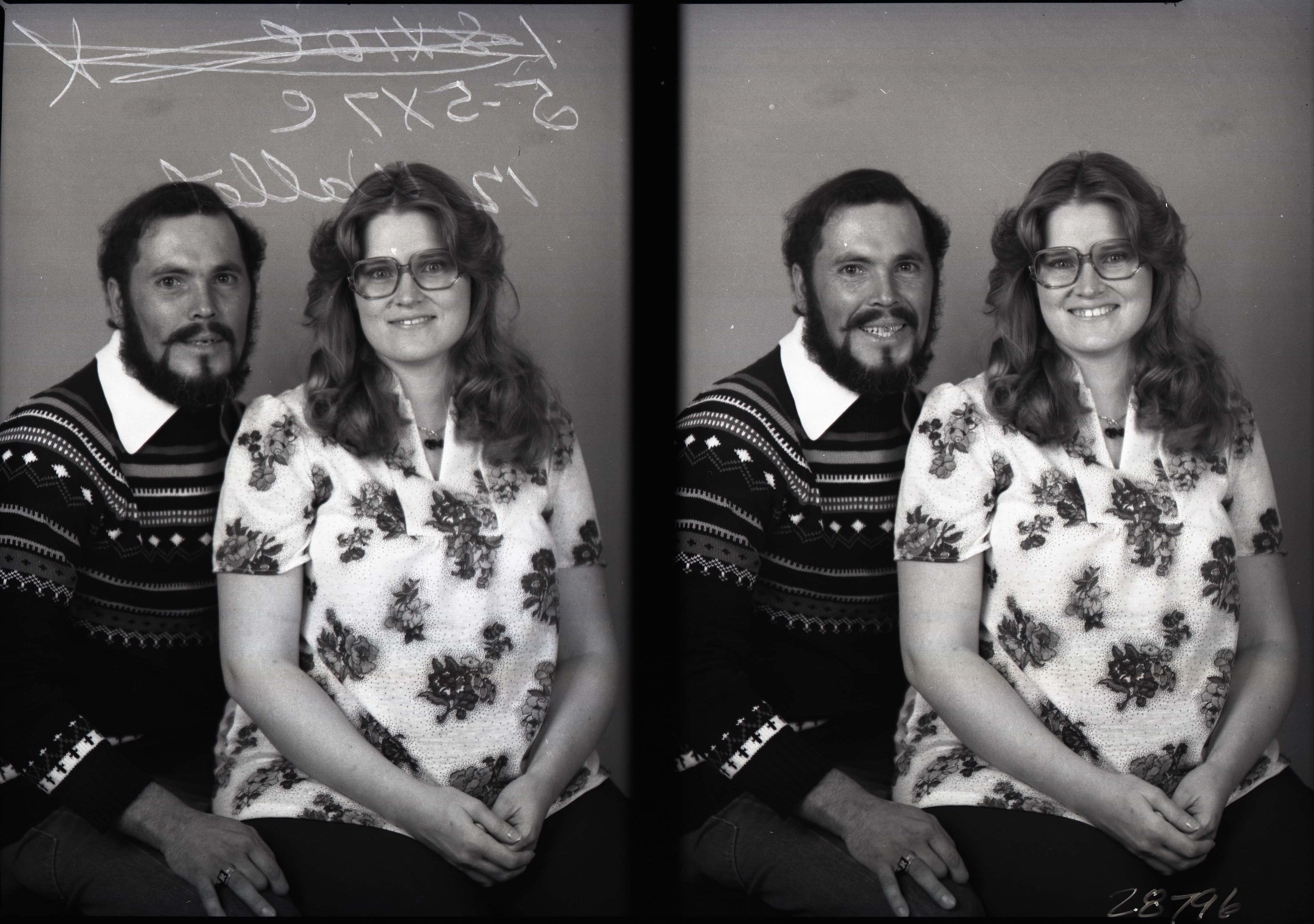 Photo of two separate portrait photographs of the same unidentified couple posed together.