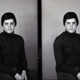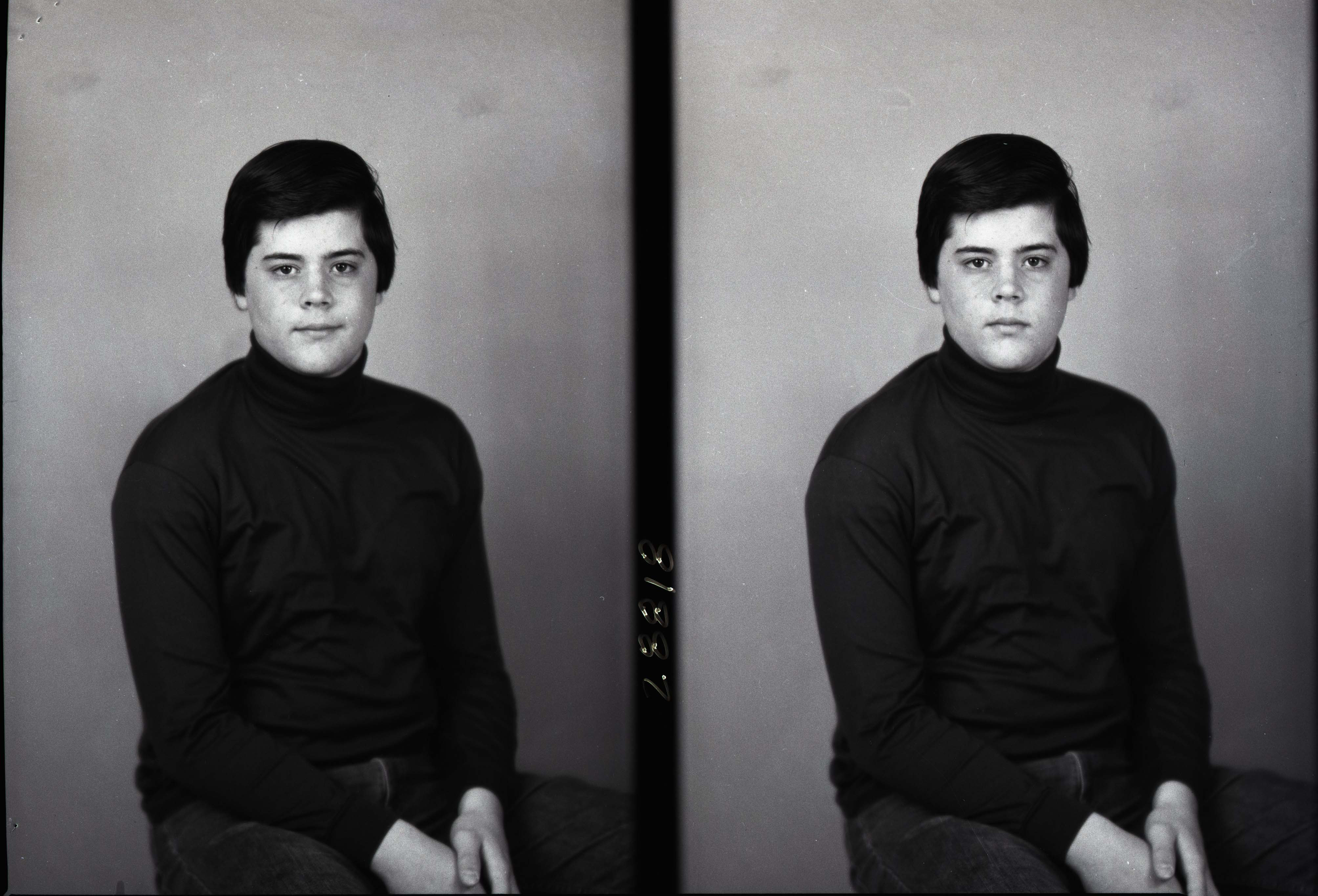 Photo of two separate portrait photographs of the same unidentified boy, probably teenaged, wearing a turtleneck shirt.