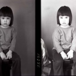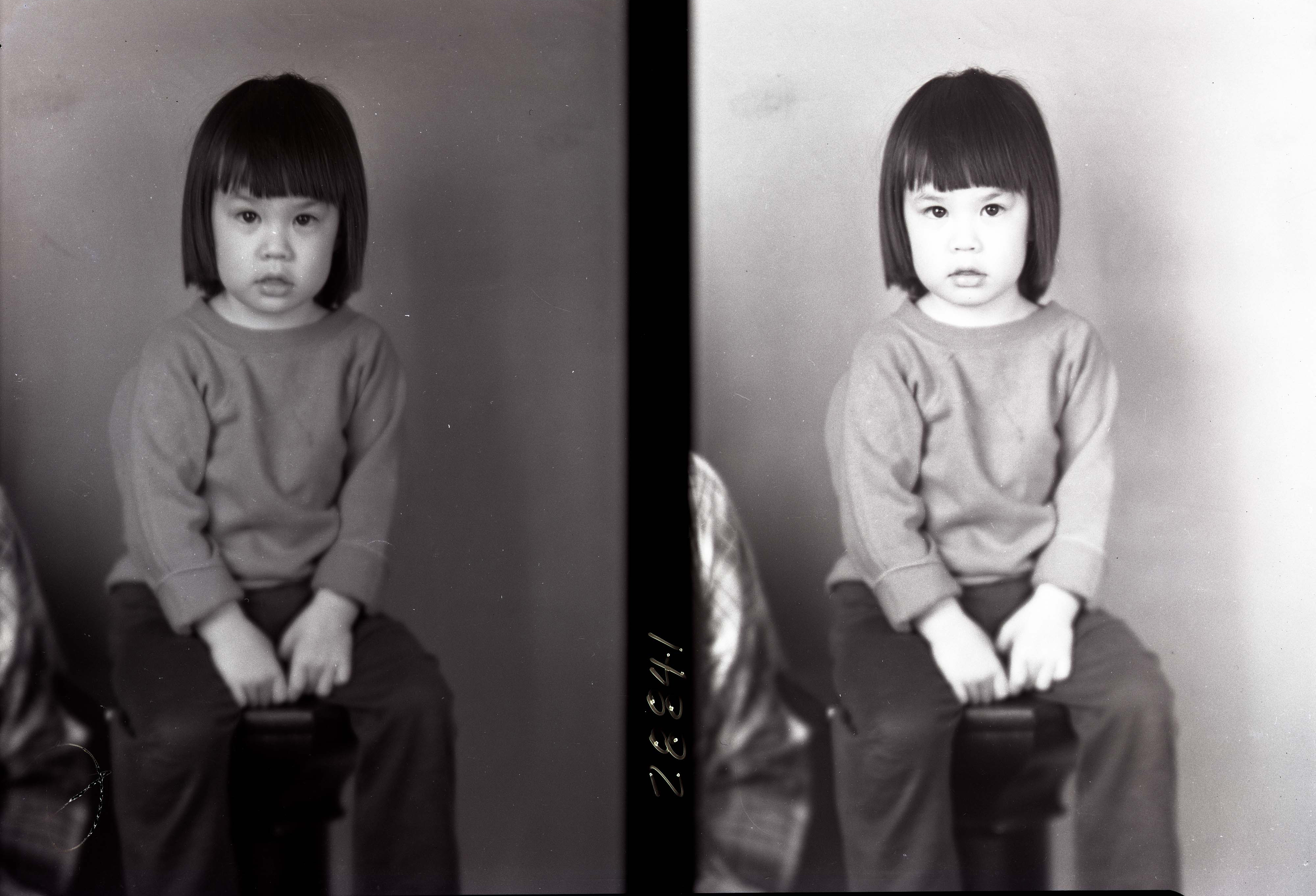 Photo of two separate photographs of the same unidentified girl with shoulder-length dark hair.