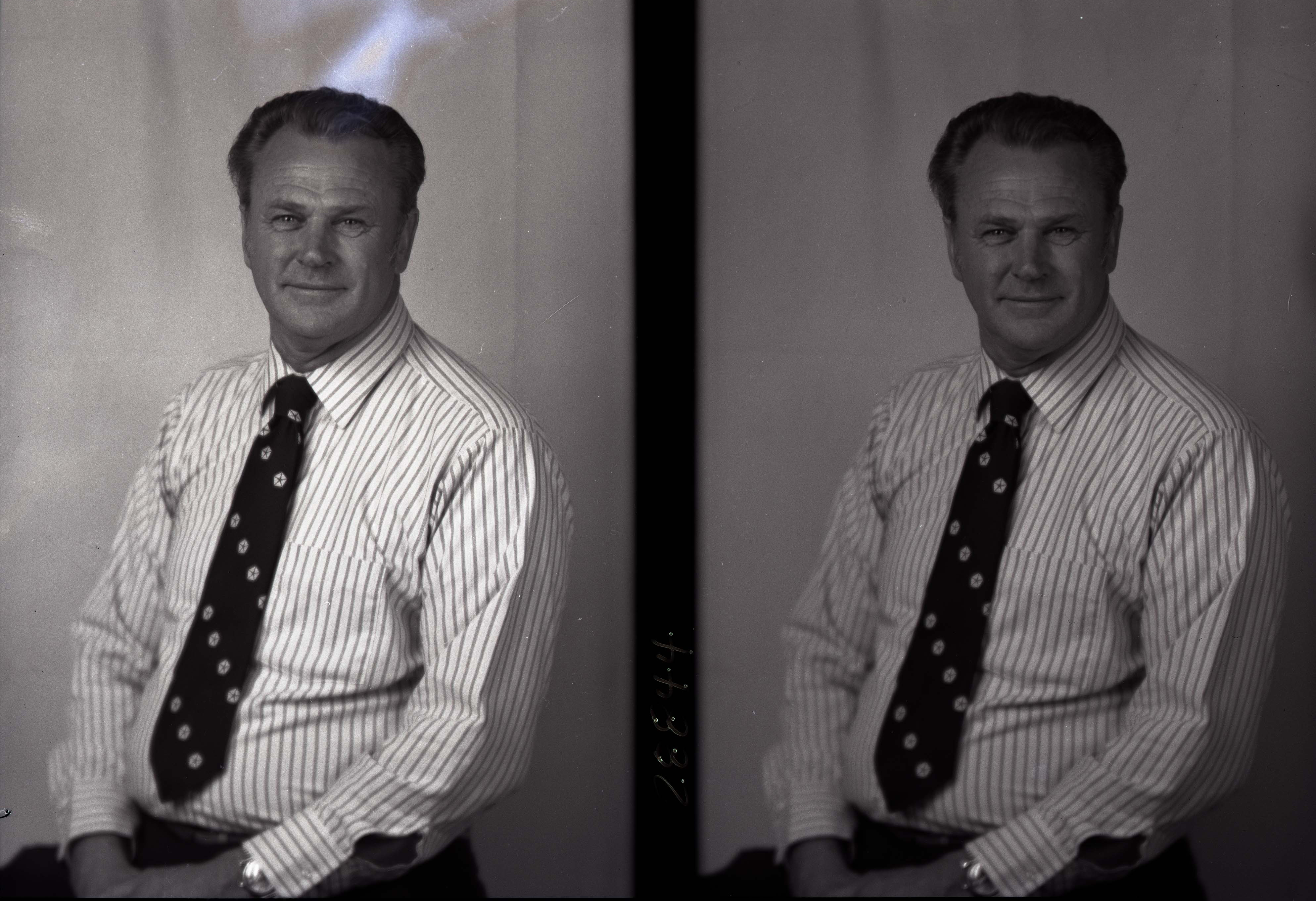 Photo of two separate portrait photograph of Ralph Henry Combs wearing a striped shirt and tie.