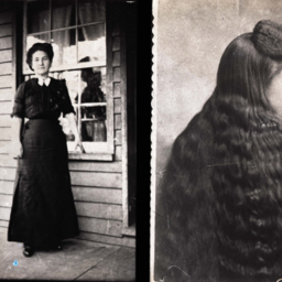 The woman on the right is shown from the back with her face in profile. She has extremely long wavy hair.