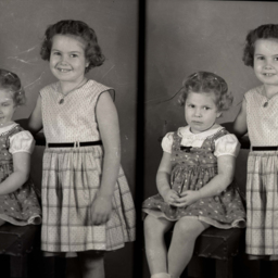 Photo of two separate photographs of the same two unidentified young girls posed together.