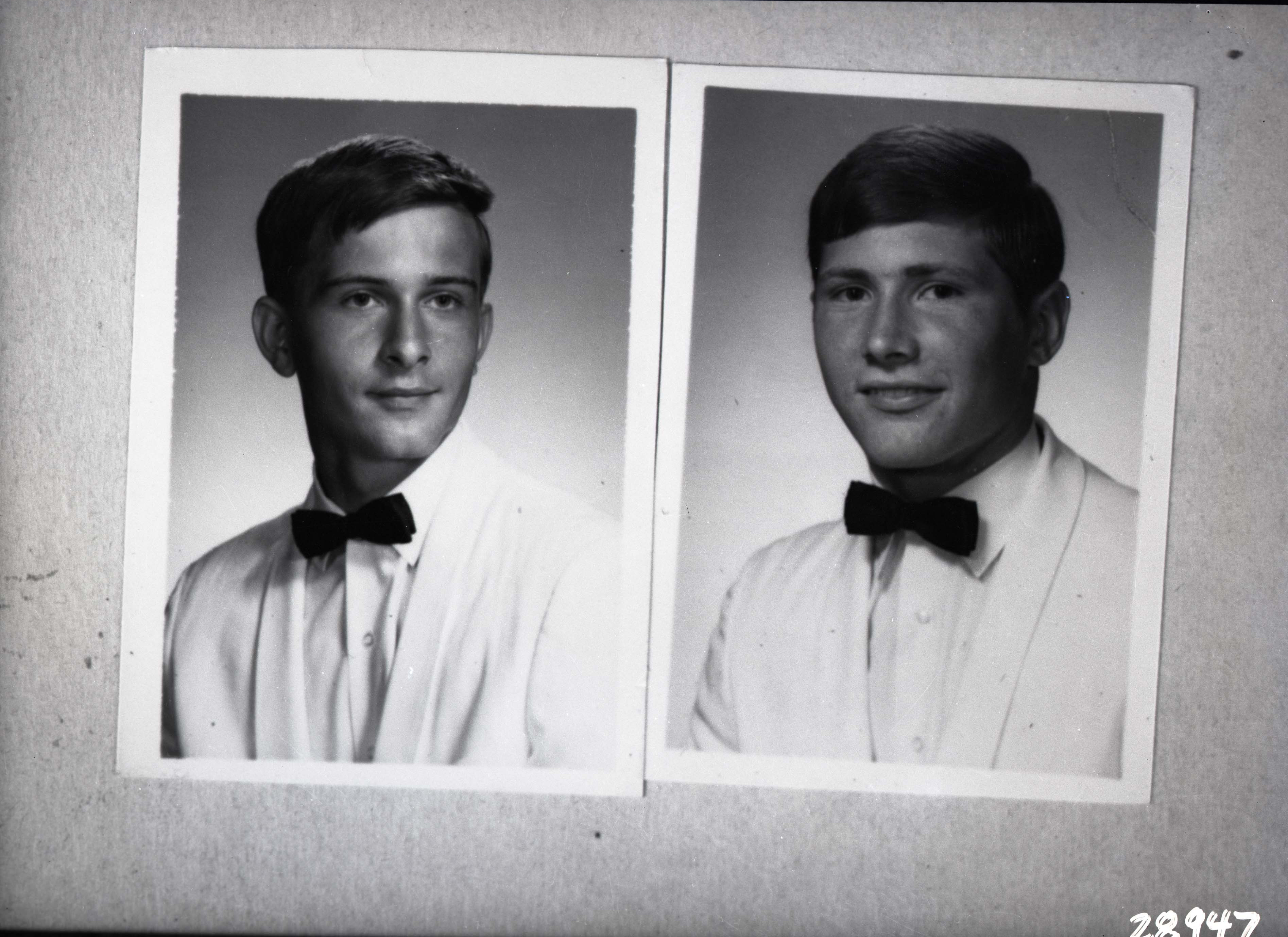 Photo of two separate portrait photographs of different young men.