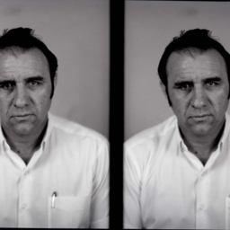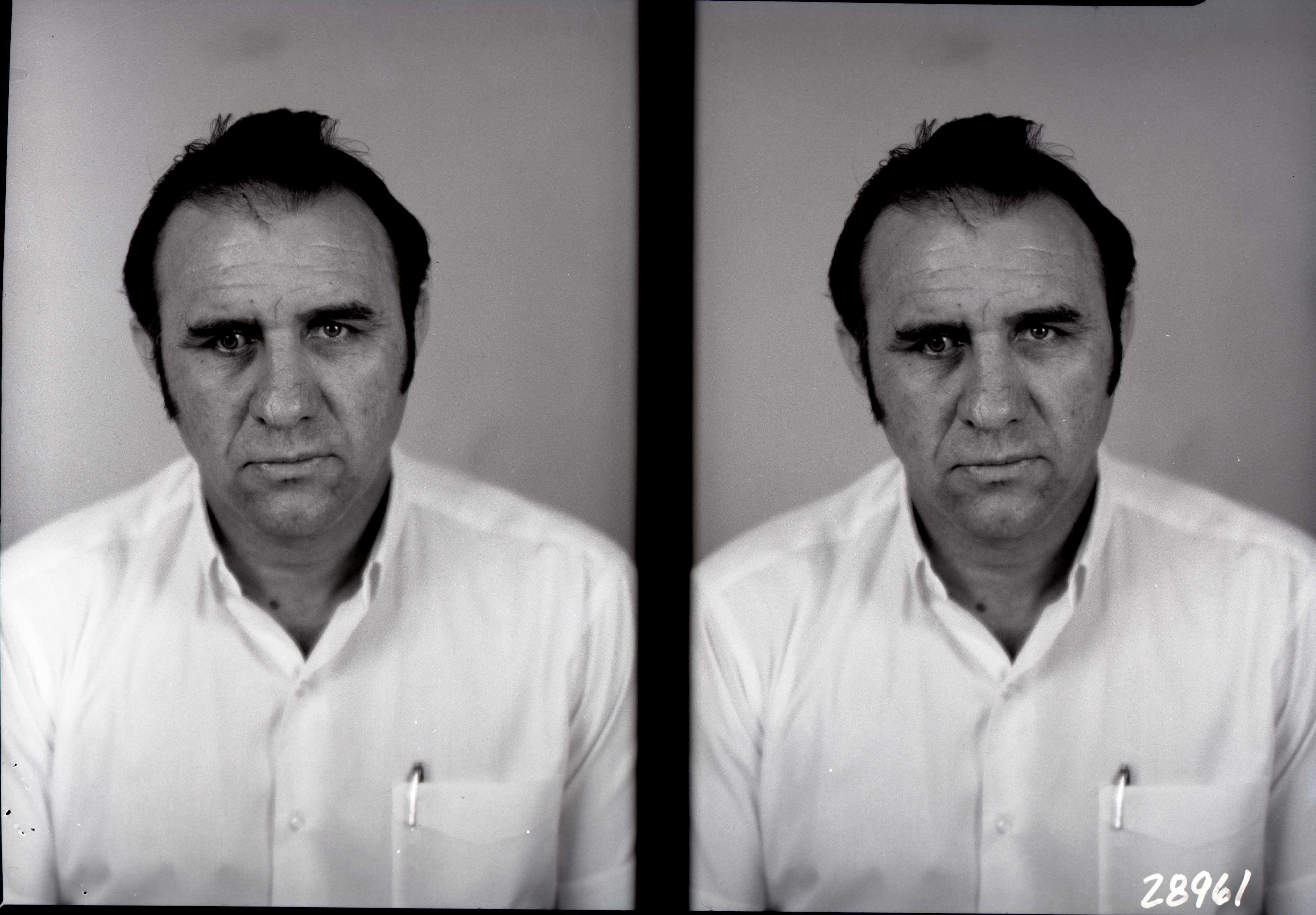 Photo of two separate portrait photographs of the same unidentified man wearing a collared shirt with a pen visible in the breast pocket.