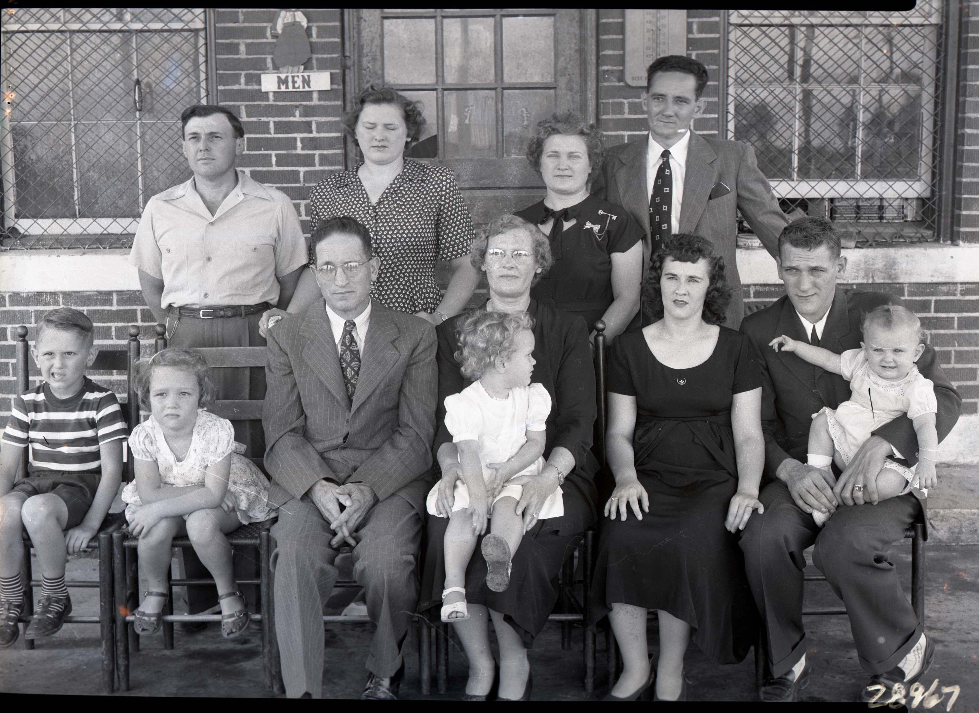 Seated: Randolph Rinker, Gloria Kronk, Jacob Earl Hottle, Patricia Kronk (on her grandmother's lap), Margaret M. (Stoneburner) Hottle, Alma (Funk) Hottle, Joe Hottle and Judy Hottle (on Joe's lap).