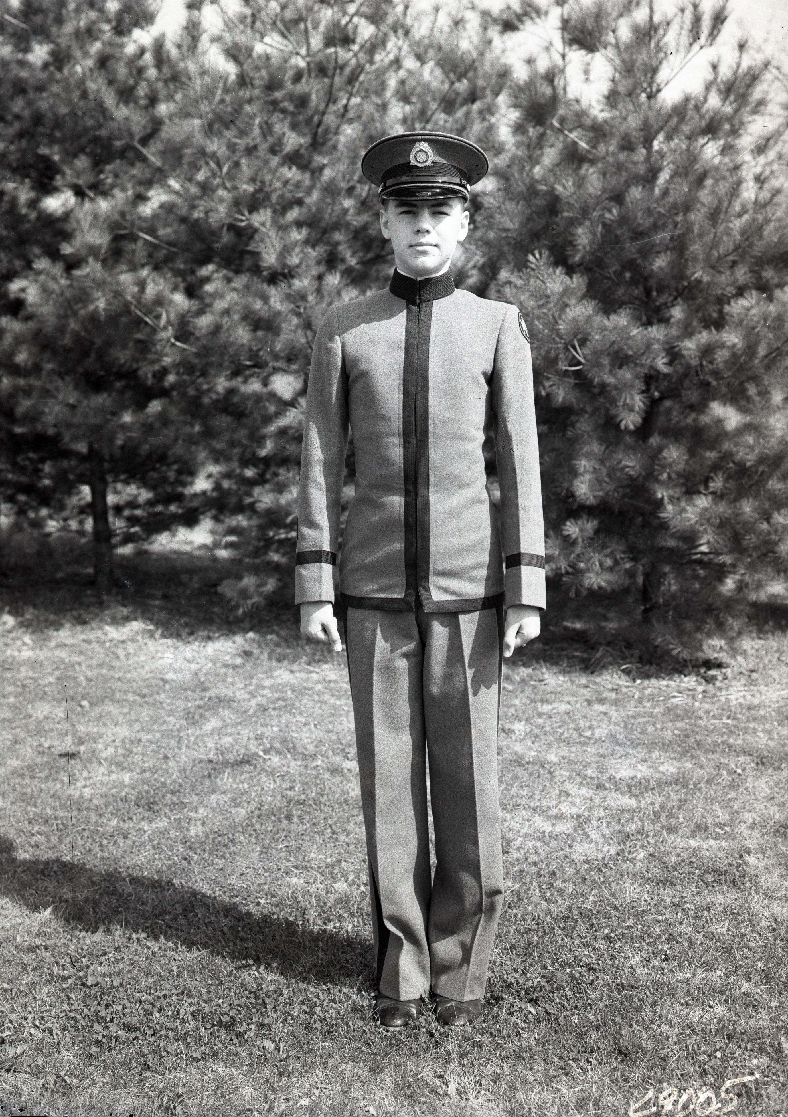 Unidentified cadet from Massanutten Military Academy (MMA) is standing outdoors in his school's uniform.