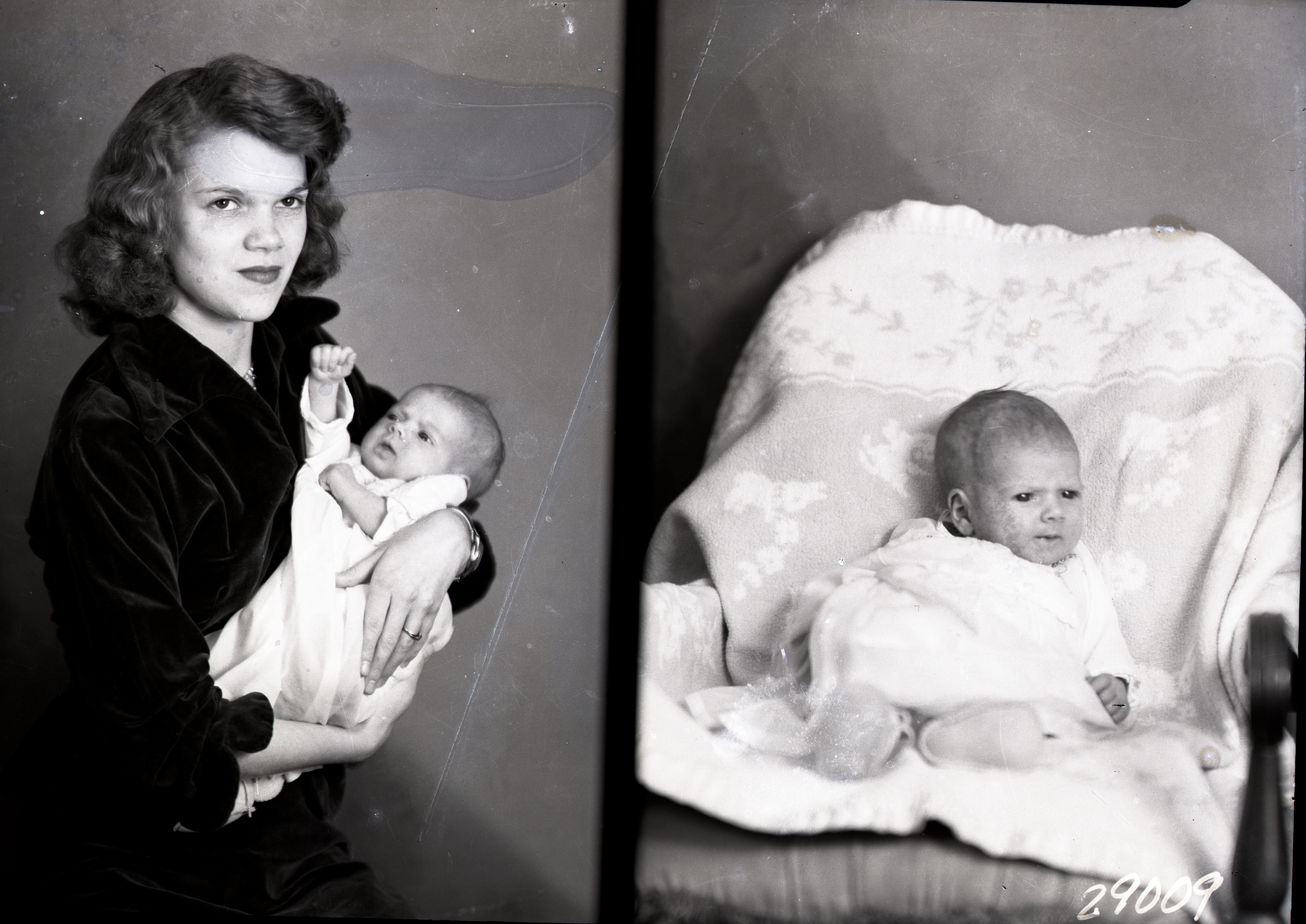 On the left is an unidentified young woman holding a tiny baby. Probably, this was a mother and her child.
