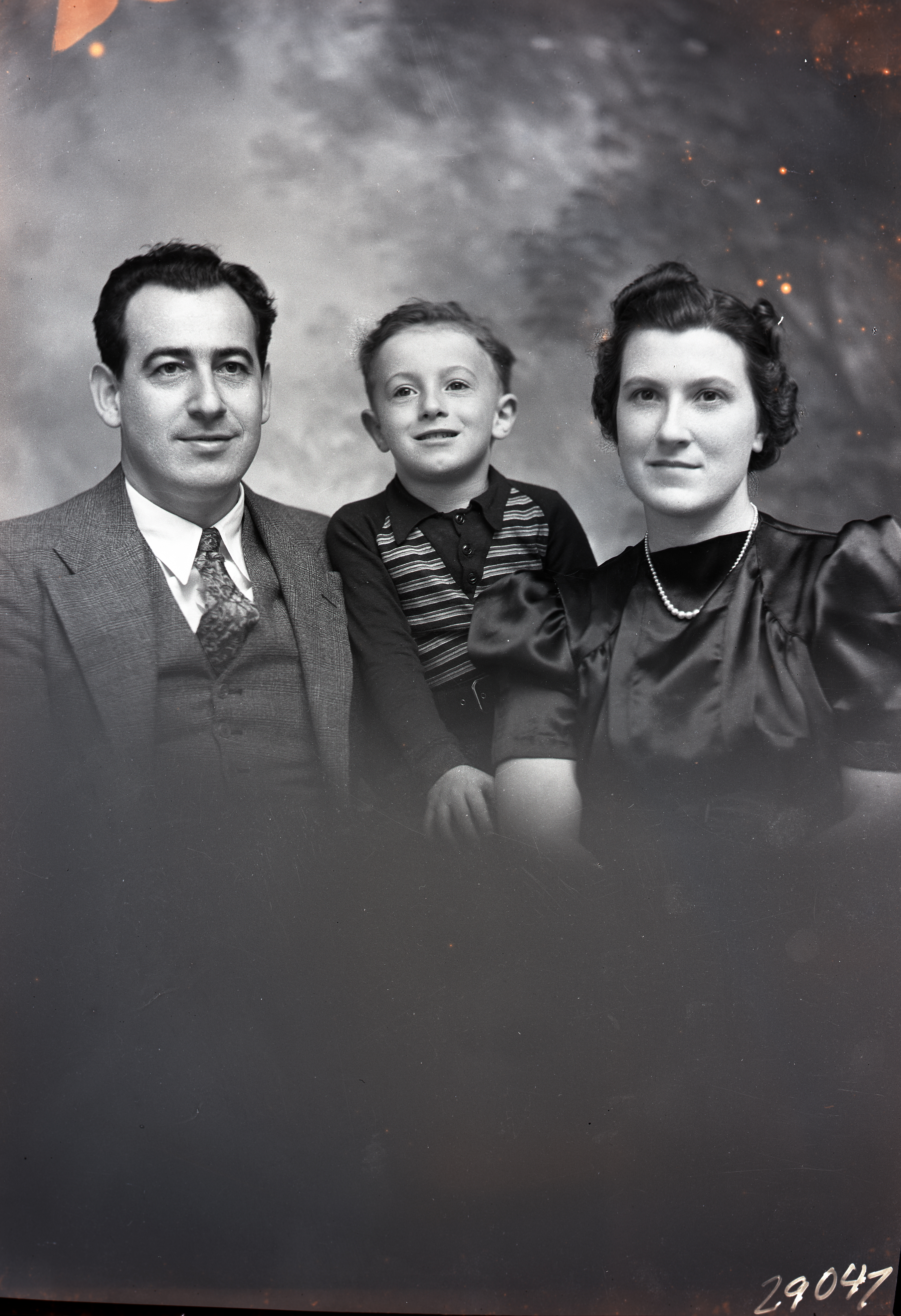 Portrait photograph of an unidentified man and woman with an unidentified young boy posed between them.