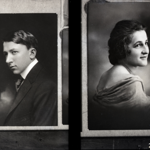 On the left, is a young man in a suit and tie with a starched collar posed facing the side and posed almost in profile.