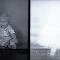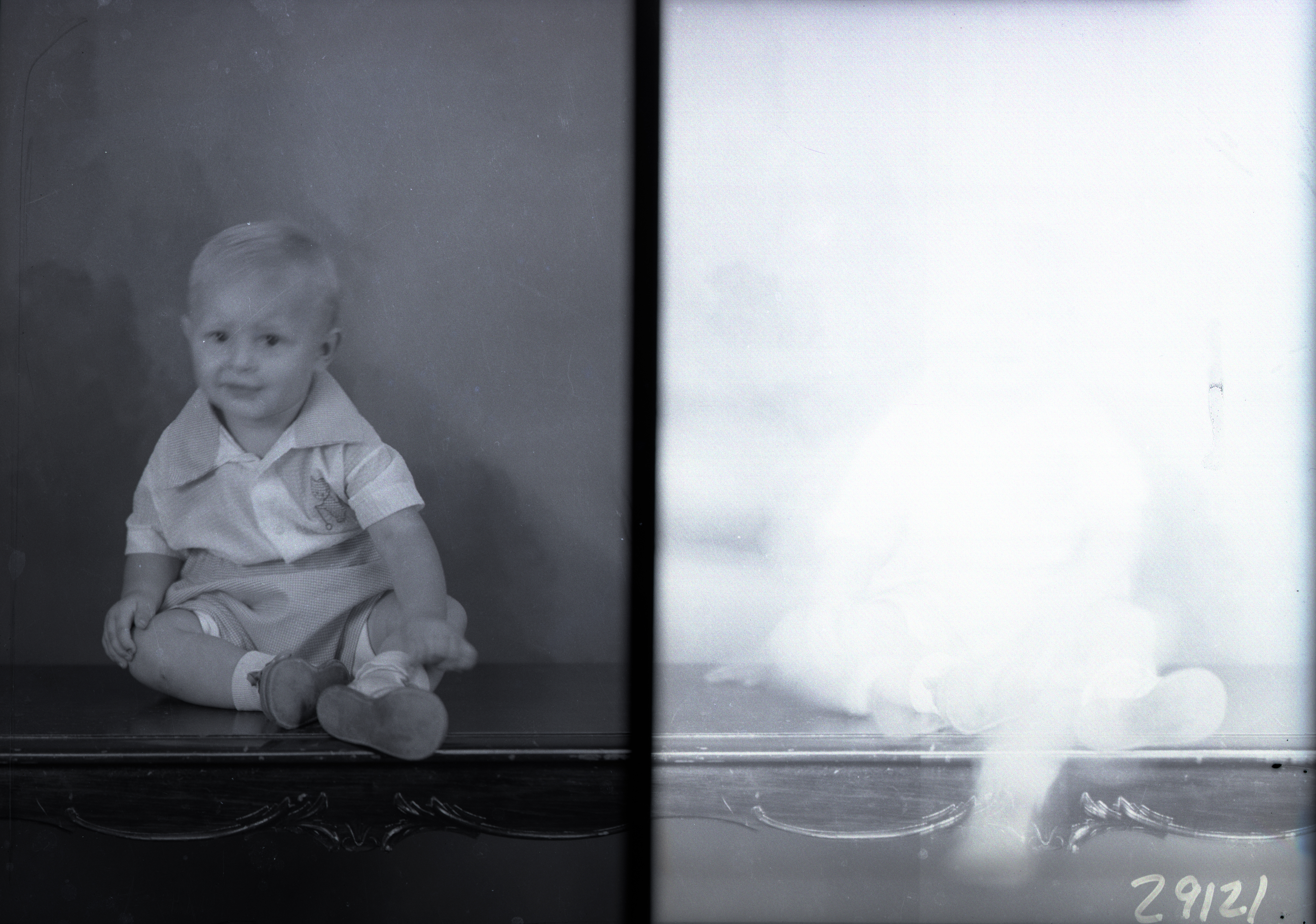 On the right is an overexposed image that was probably of the same child but only the bottom can now be seen.