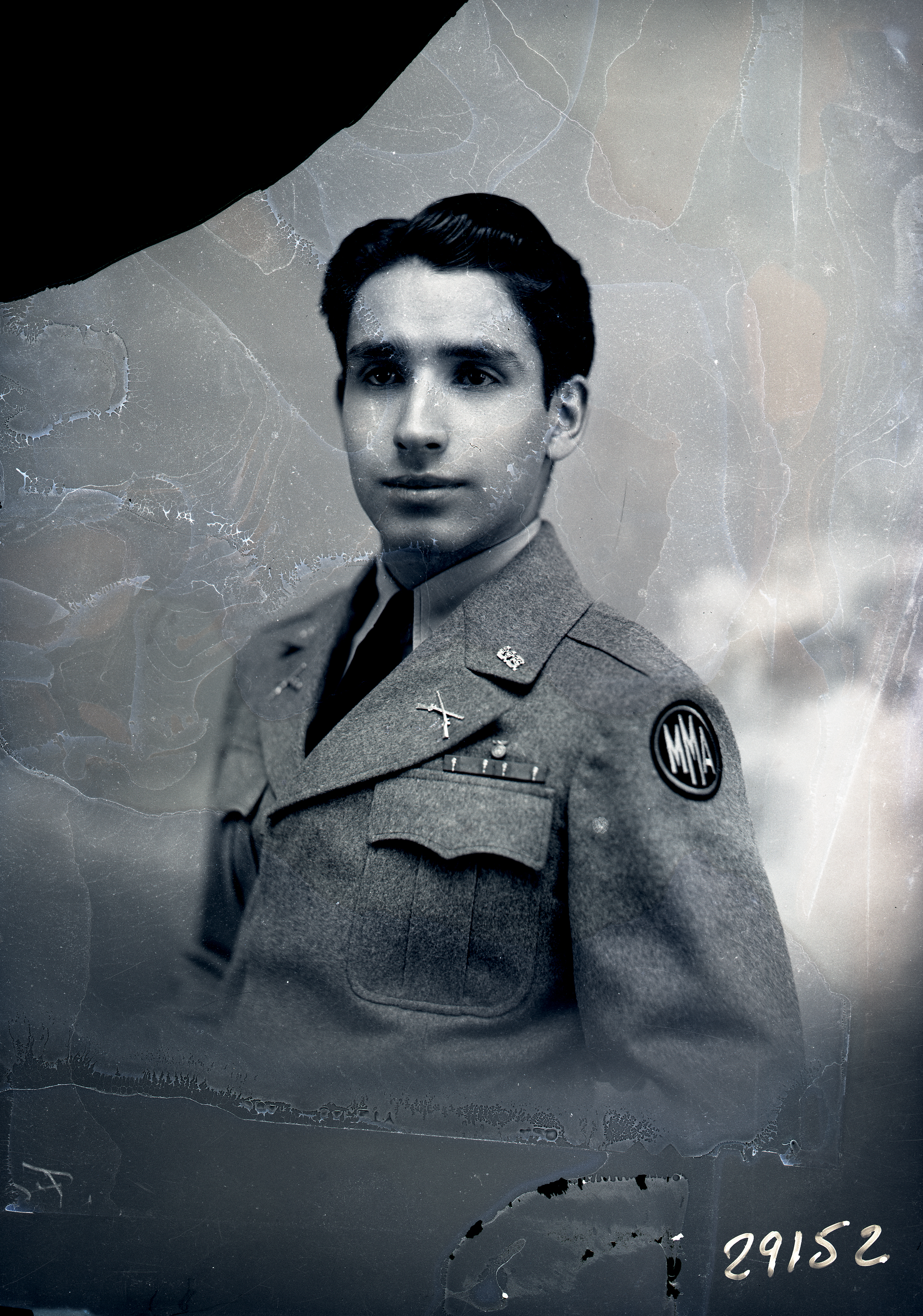 Portrait photograph of an unidentified cadet from Massanutten Military Academy (MMA) wearing his school's uniform.