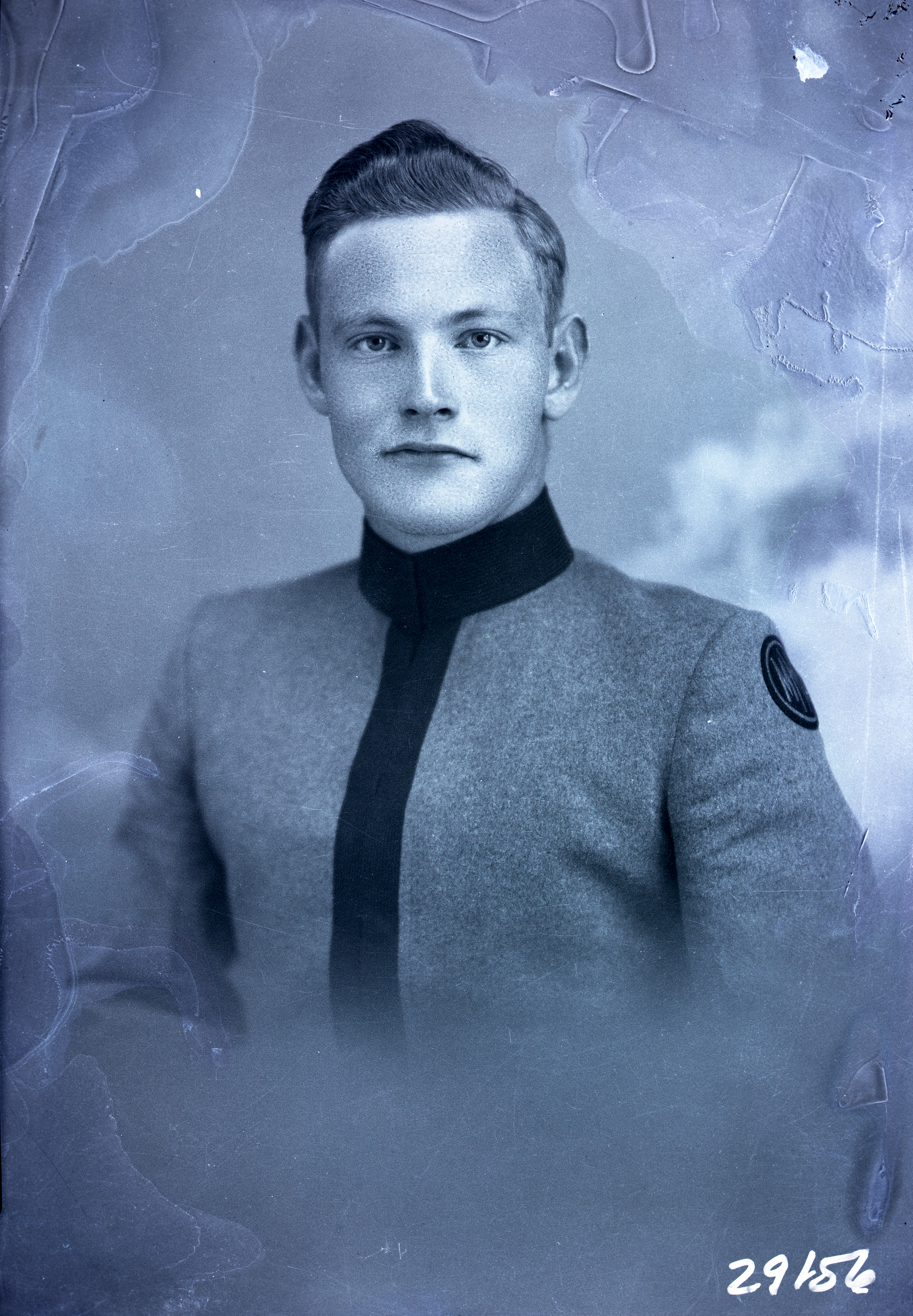 Portrait photograph of an unidentified cadet from Massanutten Military Academy (MMA) wearing his school's uniform.