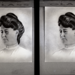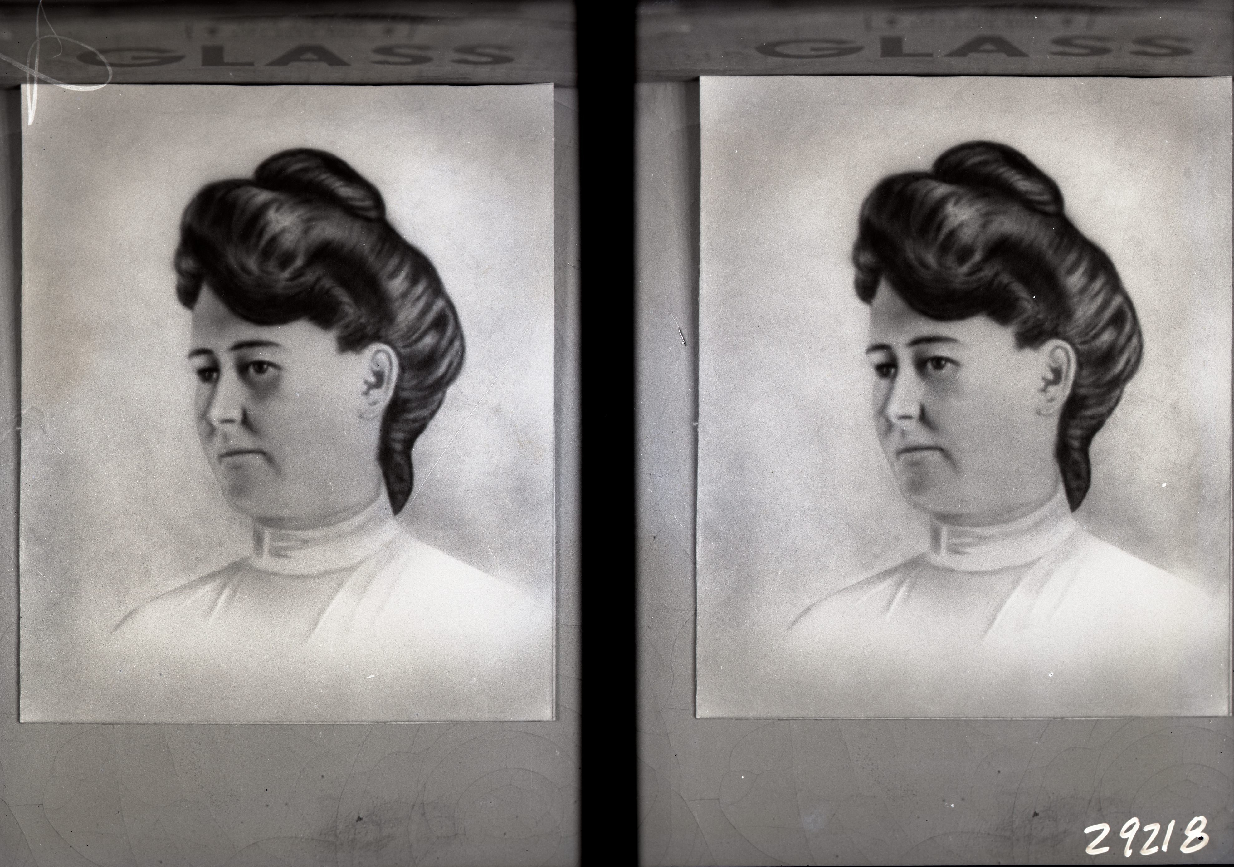 Photo of two separate drawings of the same unidentified woman with her hair pulled up into a bun.