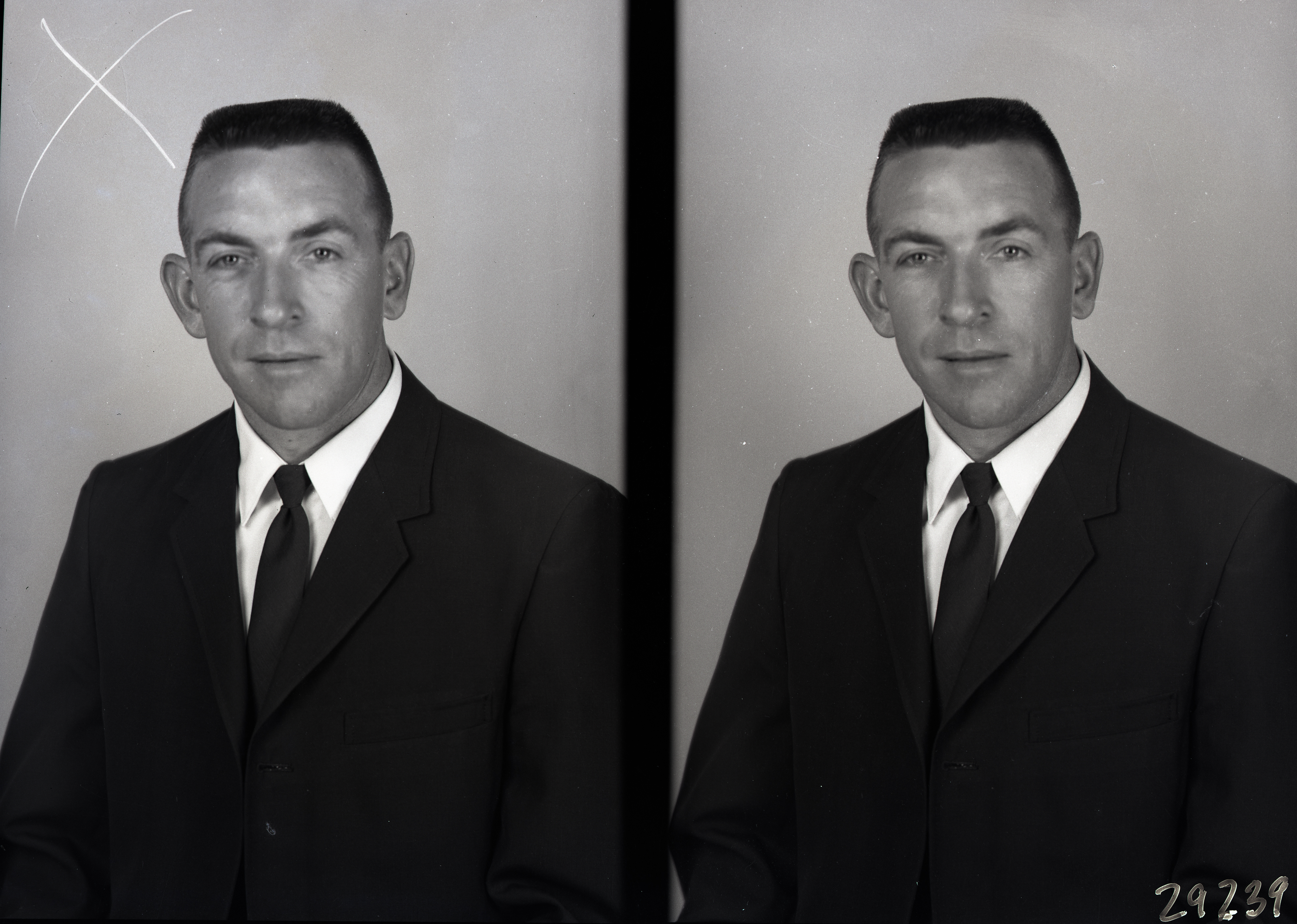 The image on the left has a mark at the top (an "X") where the photographer noted which of the two images he planned to print.
