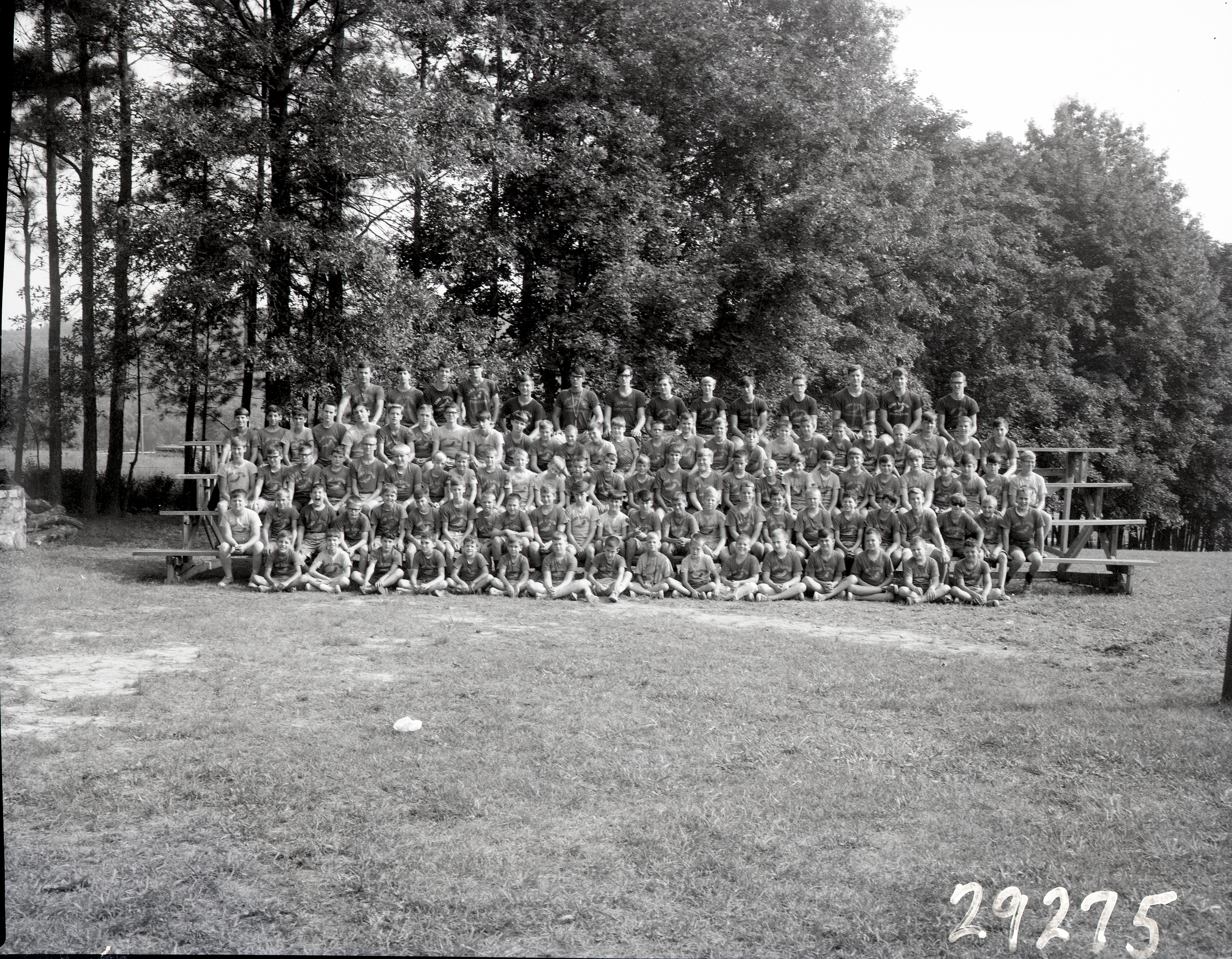 The Camp Counselors are along the top row of the bleachers.