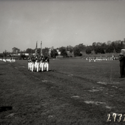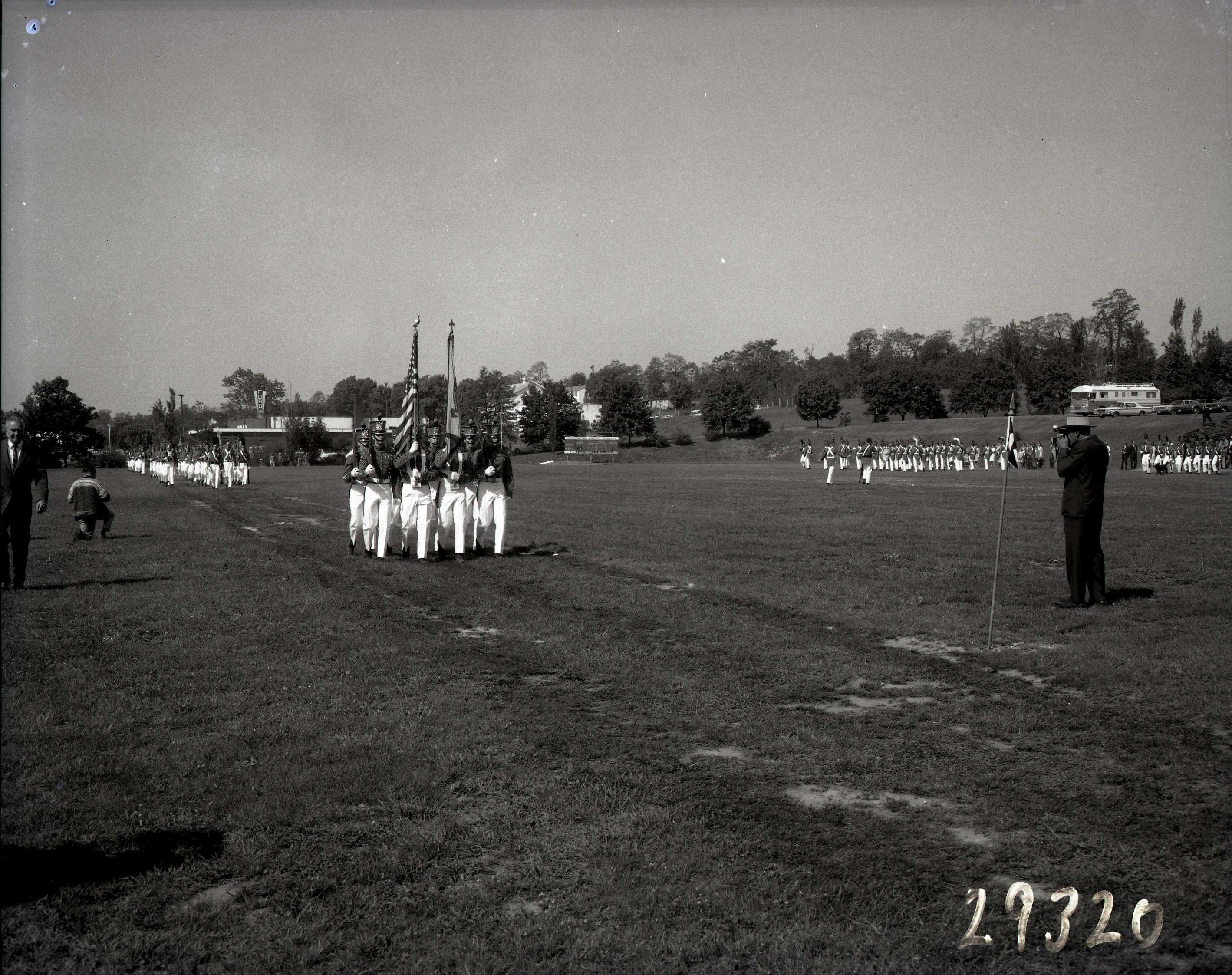 This photograph was taken during the 1954 Dedication Ceremony for the Gordon J. Bowman stadium on the MMA campus.