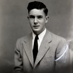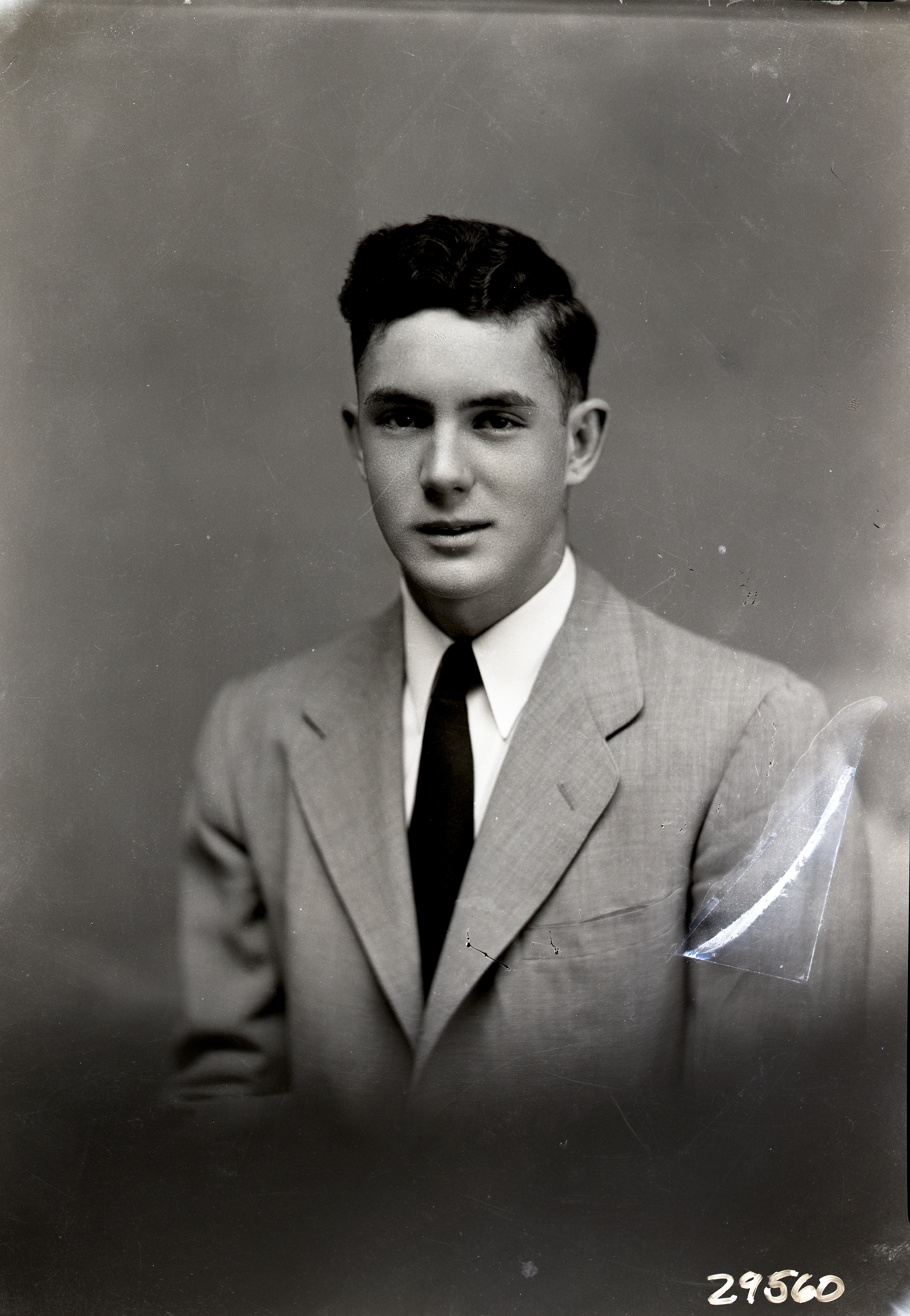 Portrait photograph of an unidentified young man wearing a suit and tie.