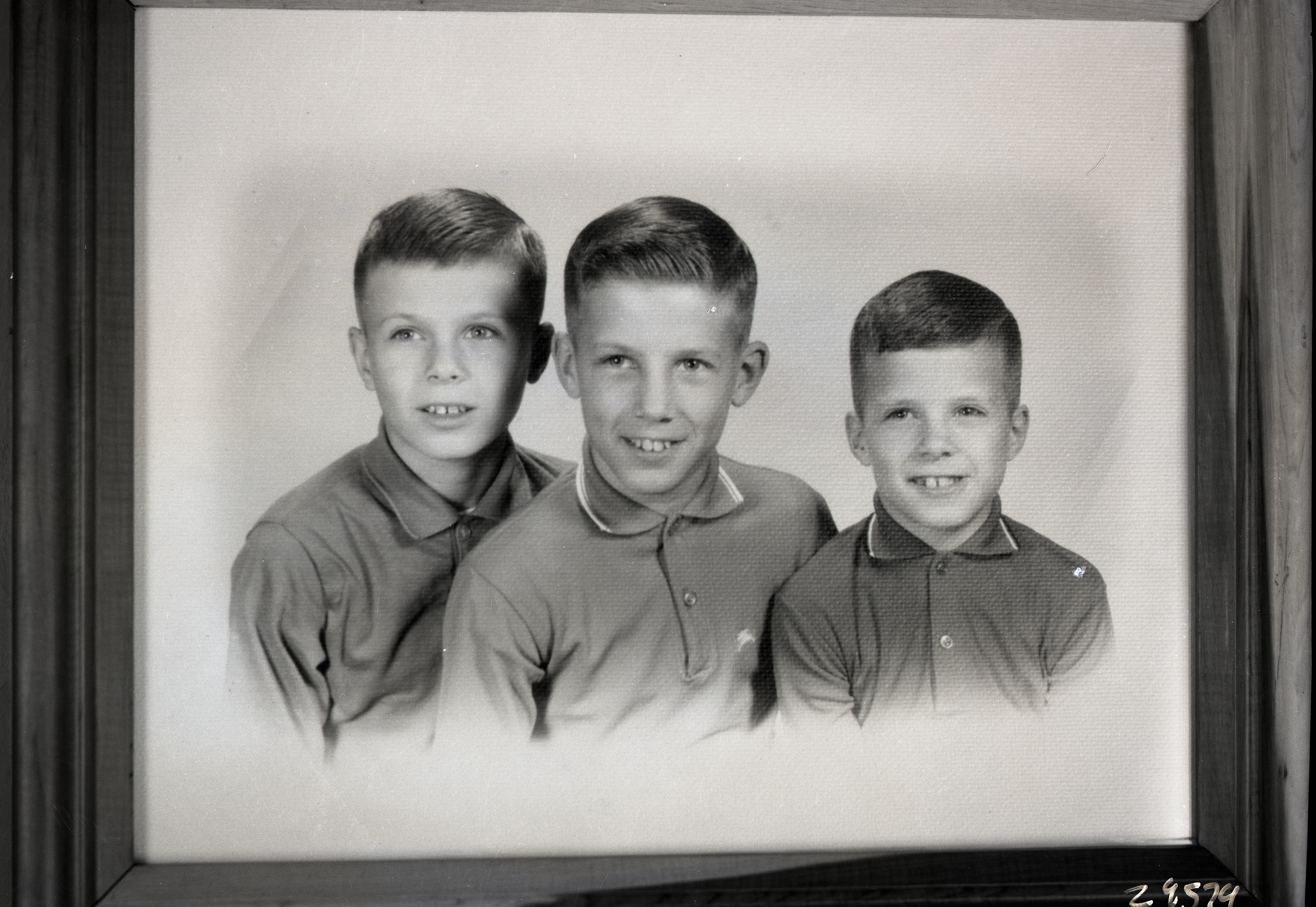 Photo of a framed portrait photograph of three brothers: Steve Snarr (left), Tom Snarr (center) and John Snarr (right).