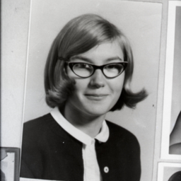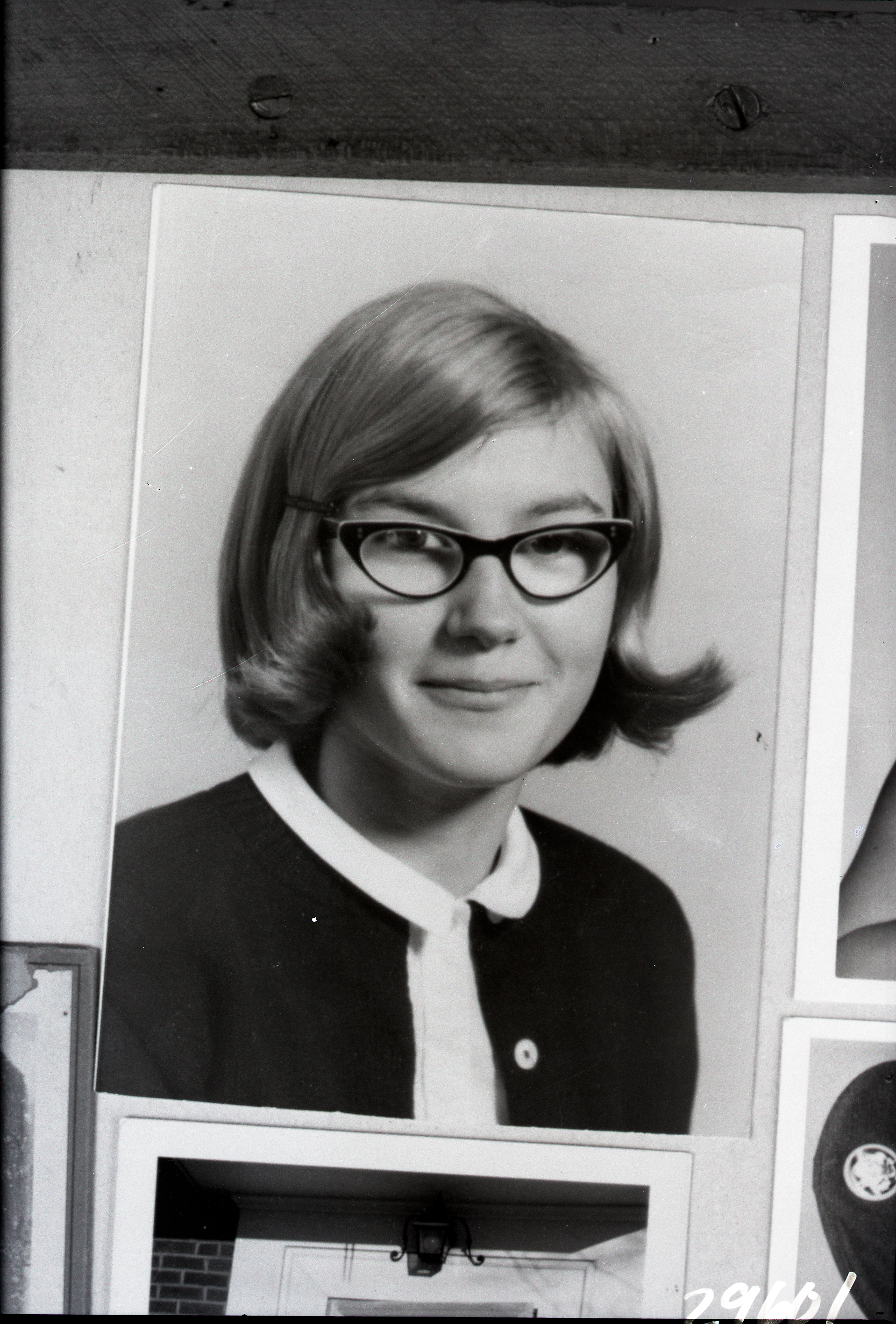 Photo of a portrait photograph of an unidentified girl with short hair and glasses.