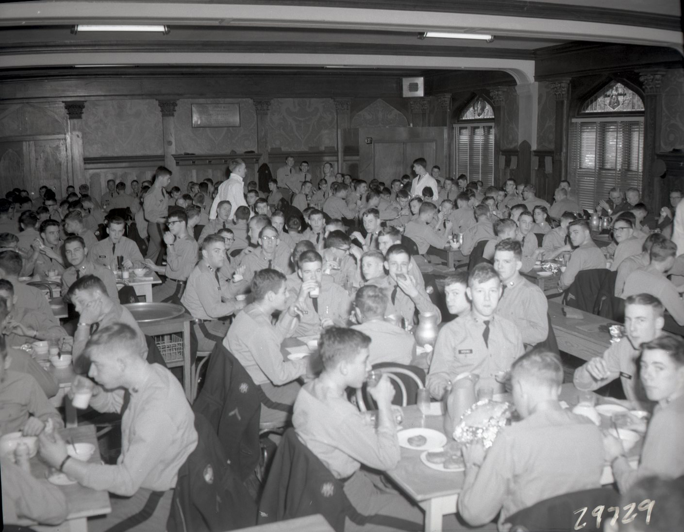Images of cadets in the MMA dining hall appear in Morrison Studio Collection numbers 029728, 029729, 029730, 029735, 029738, 029743, and 029757.