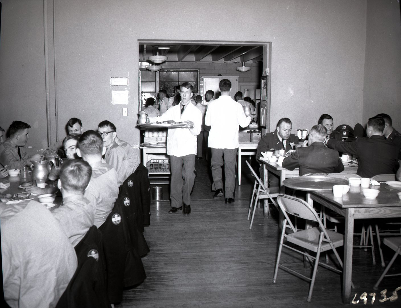 Images of cadets in the MMA dining hall appear in Morrison Studio Collection numbers 029728, 029729, 029730, 029735, 029738, 029743, and 029757.
