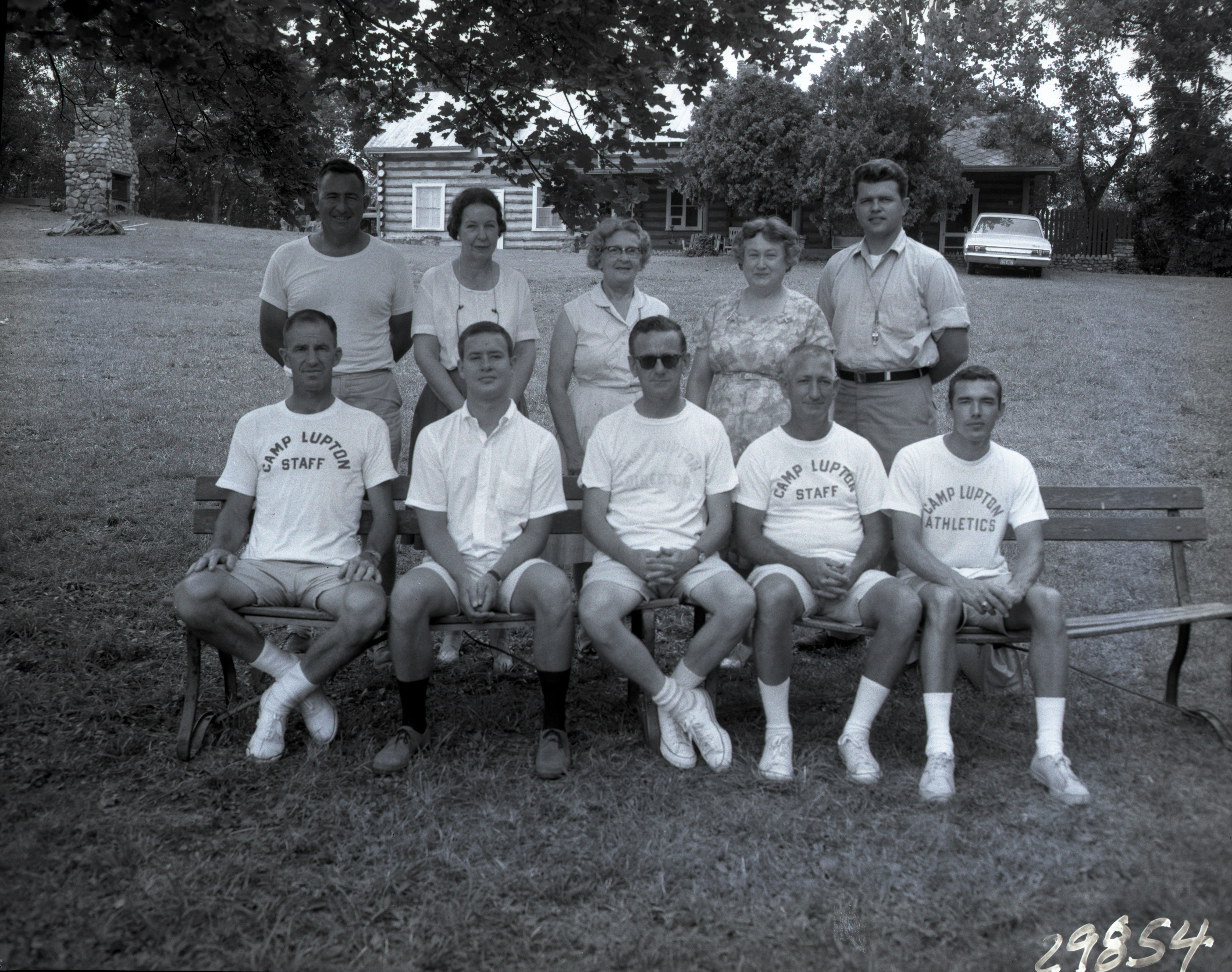 Photograph of unidentified members of the Camp Lupton staff posed in two rows outdoors.
