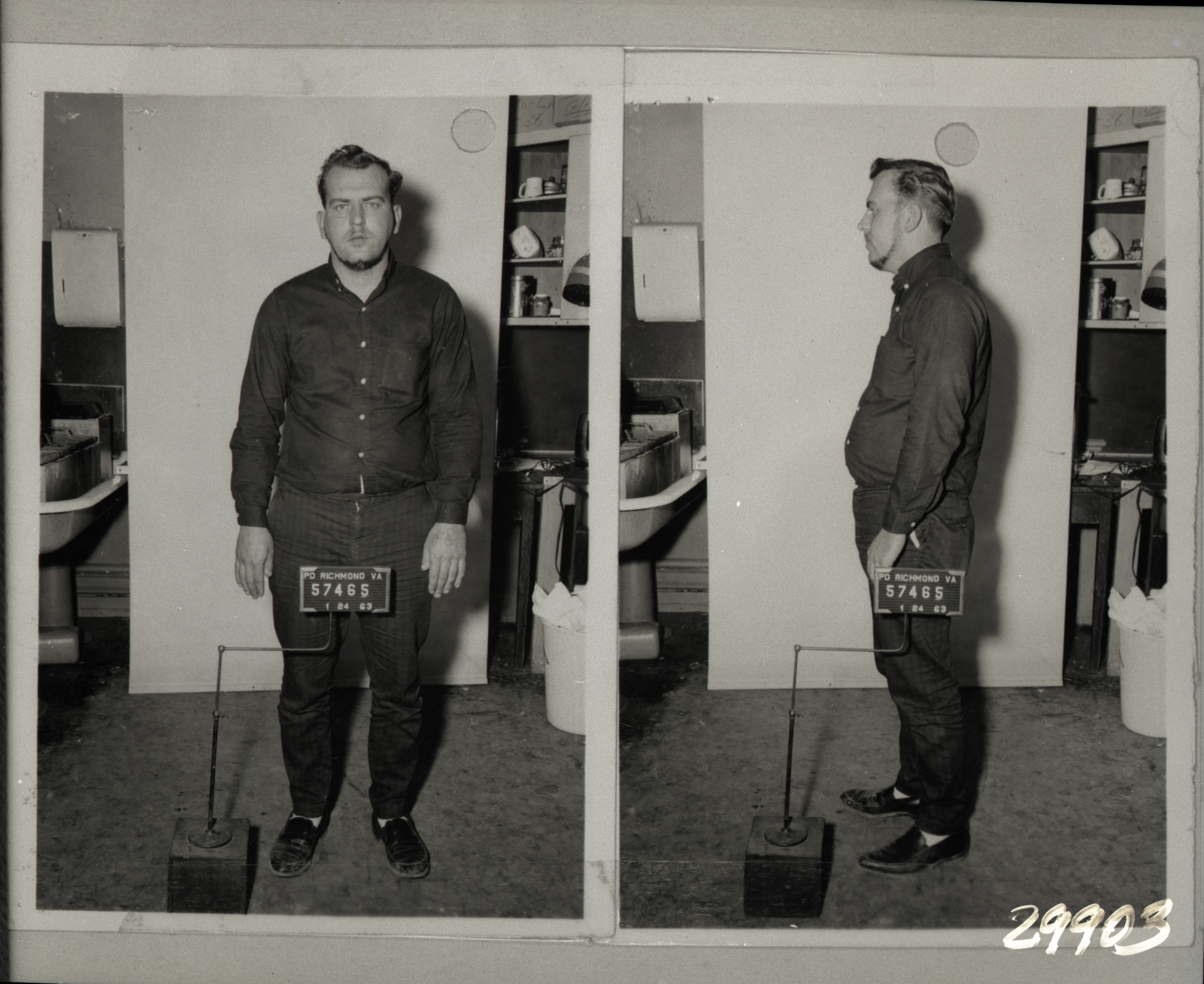 Both photographs include a sign in front that says, "PD Richmond Va", the number "57465", and the date "1 24 63".
