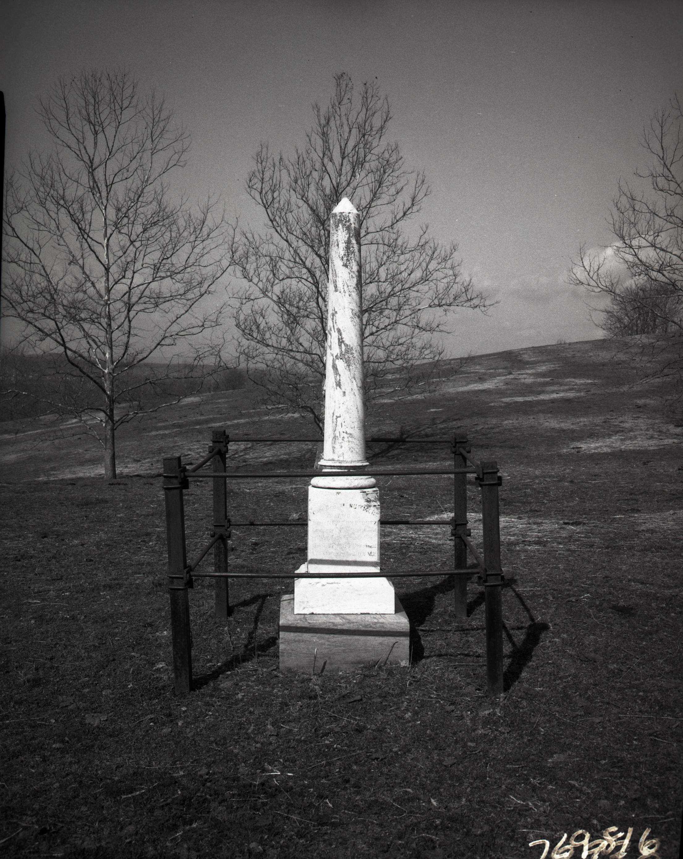 Photograph of the monument commemorating the unjust execution of Captain George W. Summers and Sergeant Newton Koontz Company D 7th Virginia Cavalry on June 27, 1865, by order of Union Lt. Col. Huzzy.