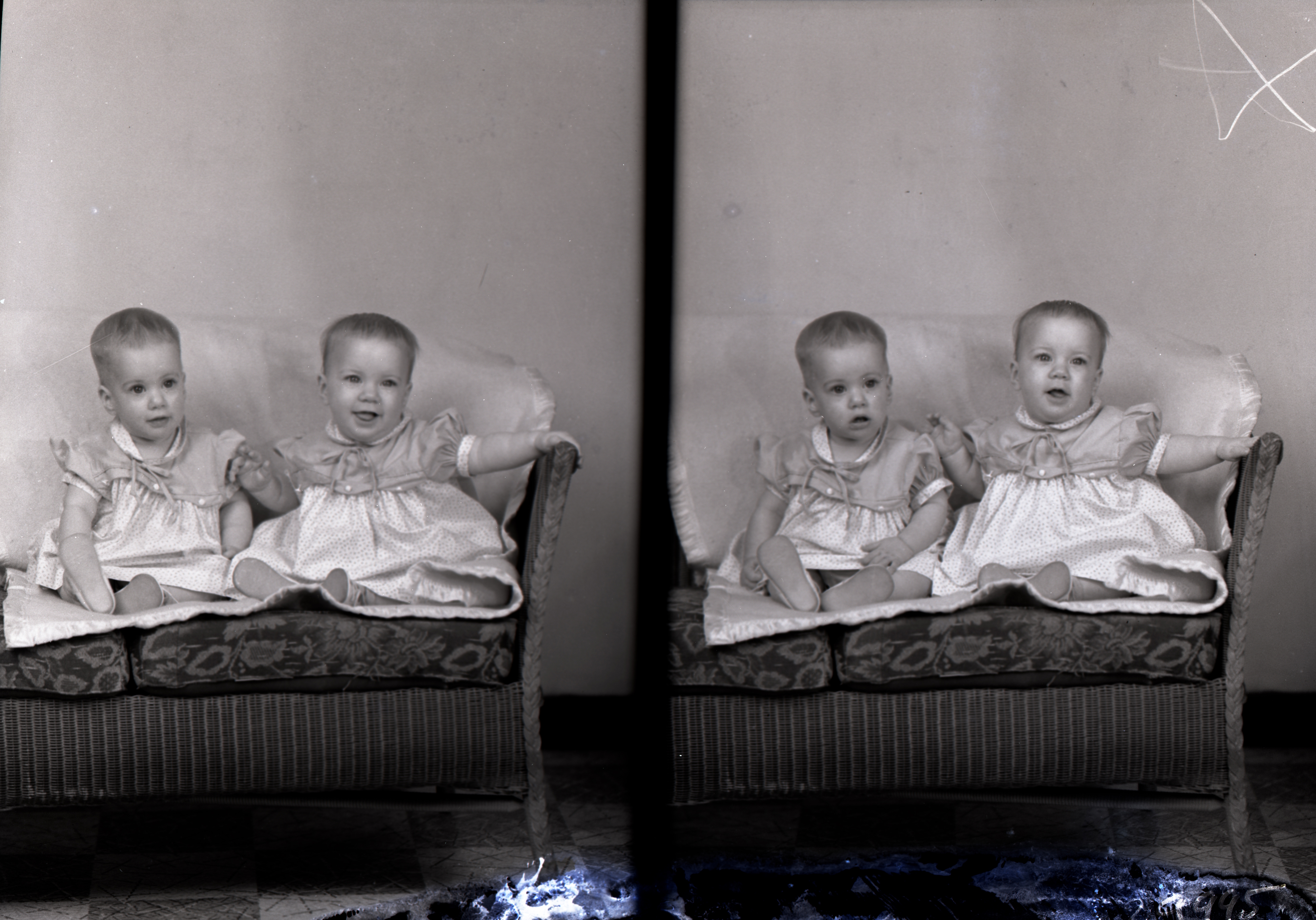 Photo of two separate photographs of the same two unidentified young children.