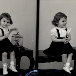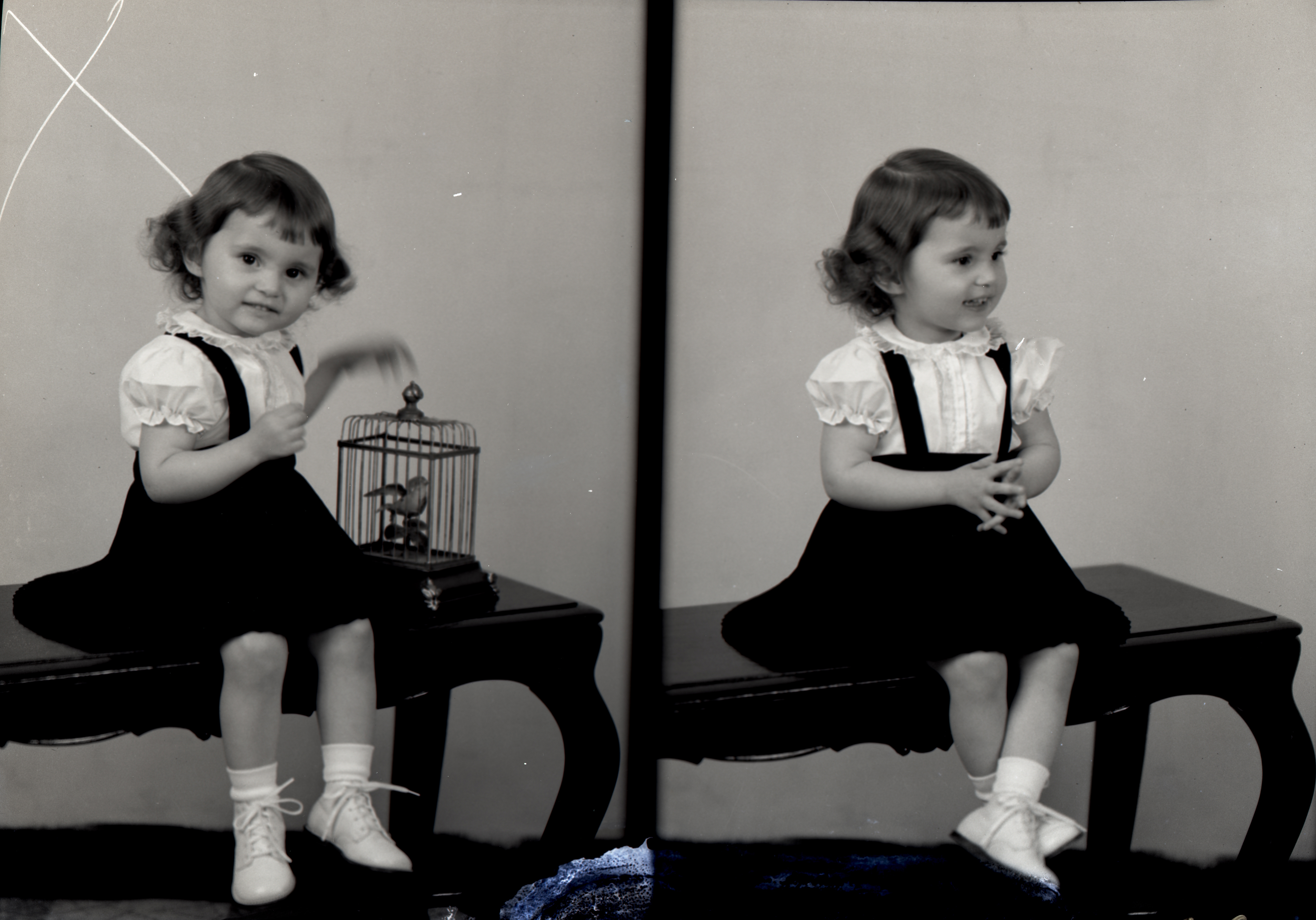 Photo of two separate photographs of the same unidentified young girl with short hair.