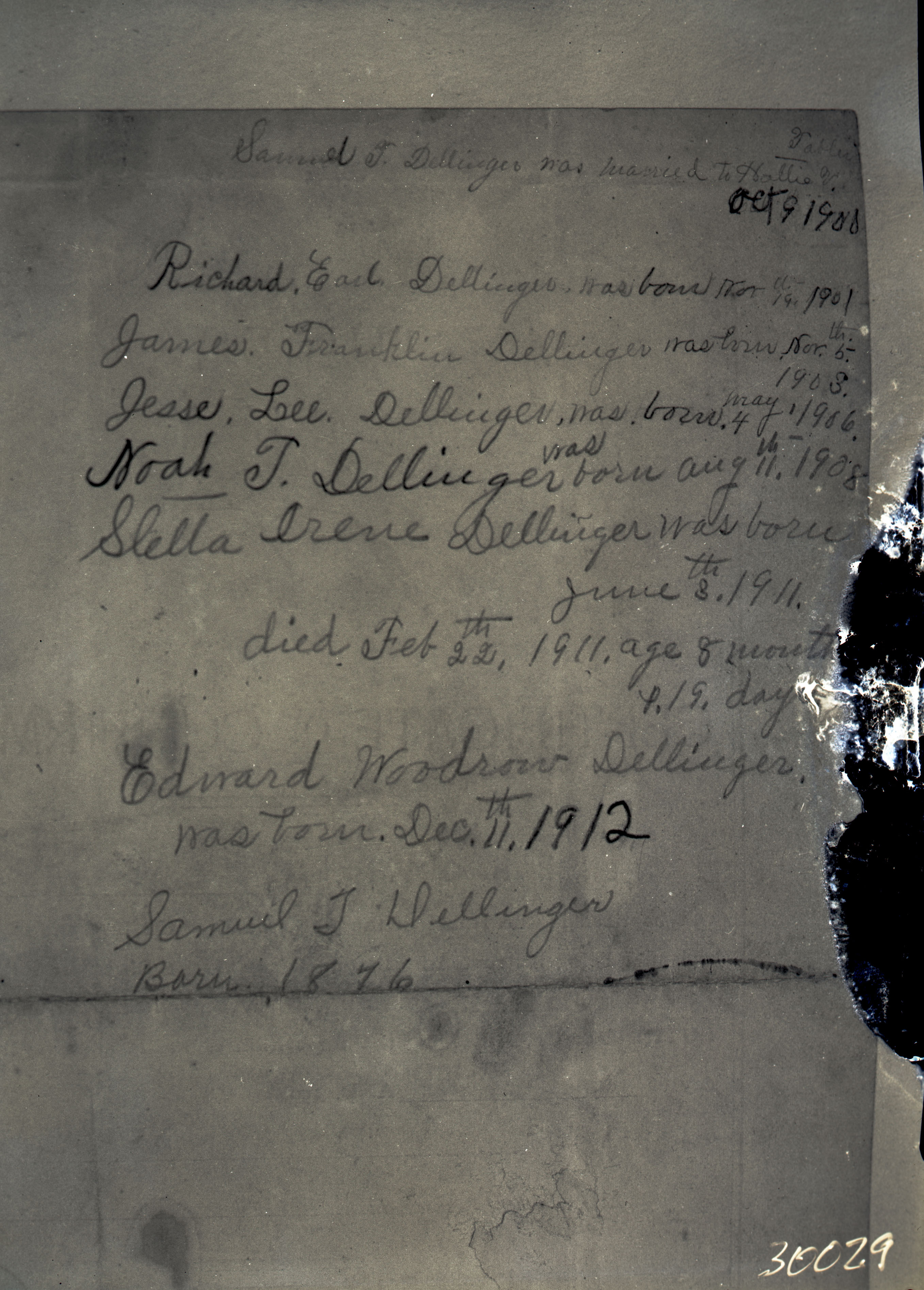 Samuel T. Dellinger was born 1876