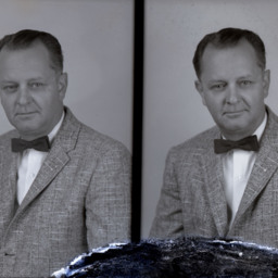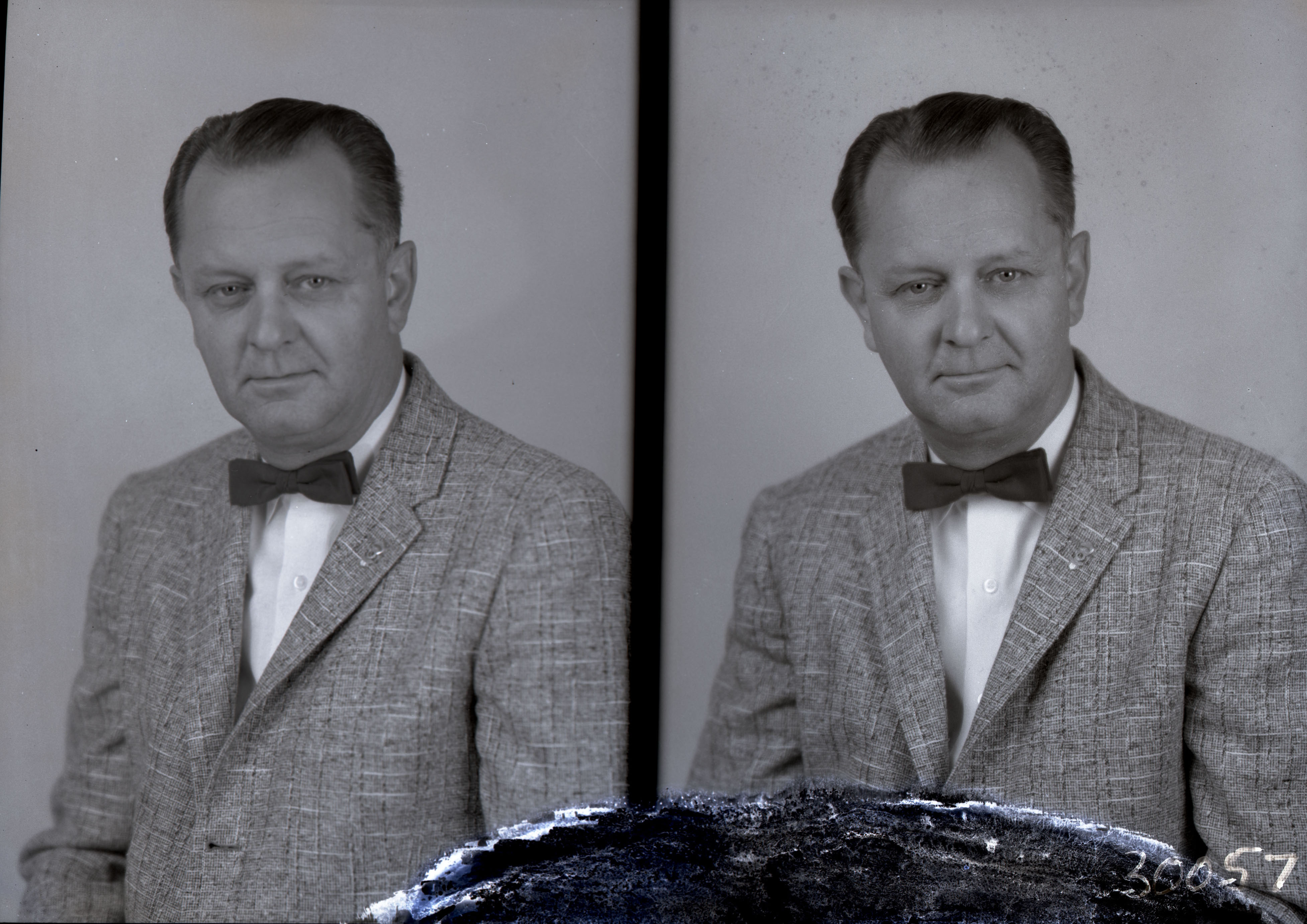 Photo of two separate portrait photographs of the same unidentified man wearing a suit and bow tie.