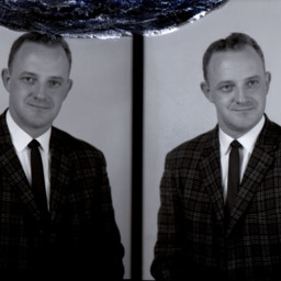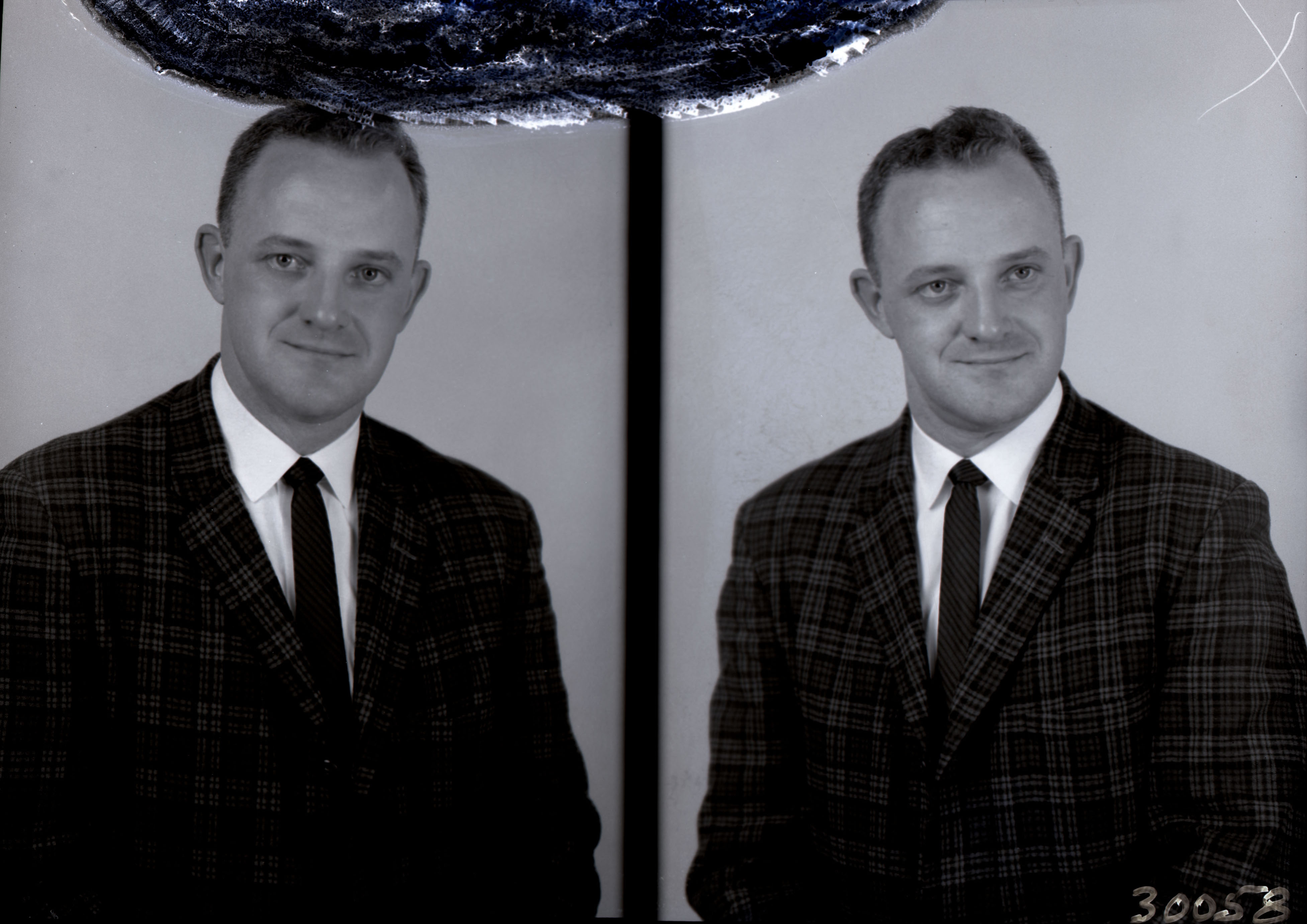 Photo of two separate portrait photographs of the same unidentified man wearing a suit and tie.