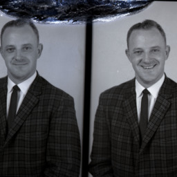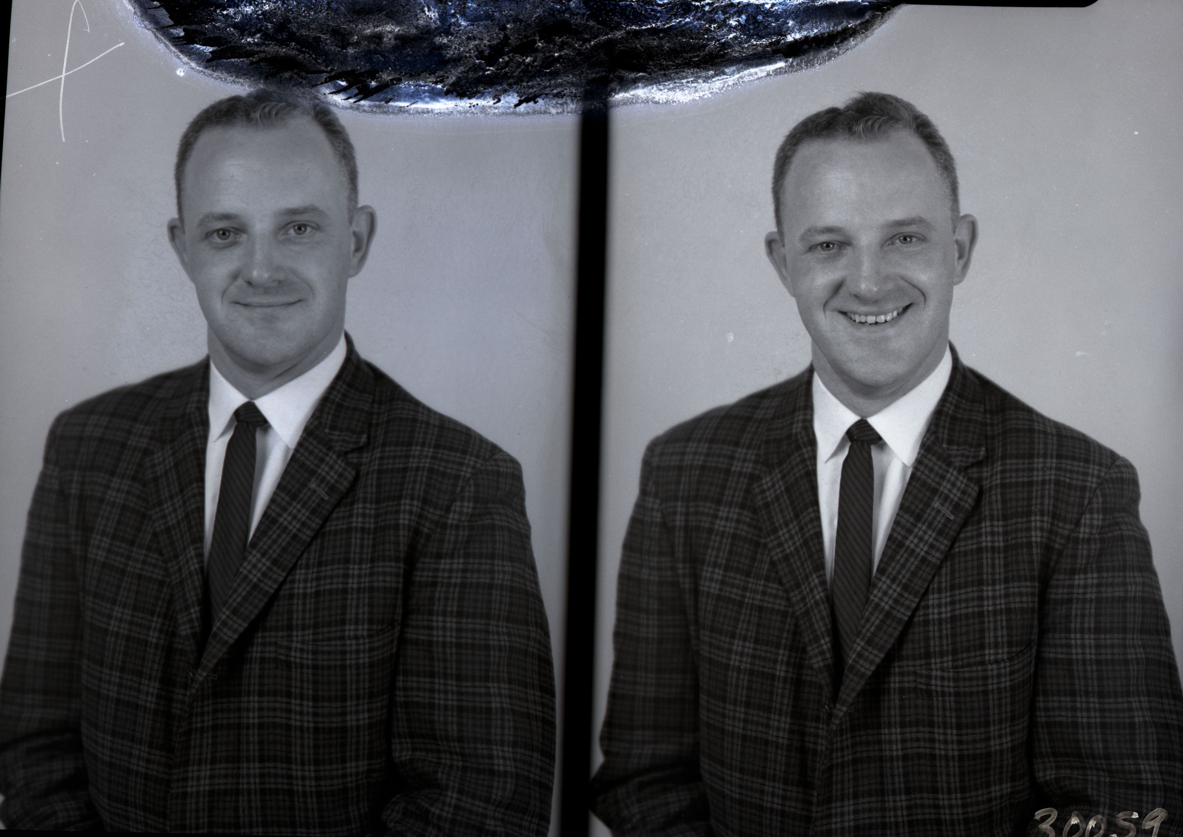 Photo of two separate portrait photographs of the same unidentified man wearing a suit and tie.